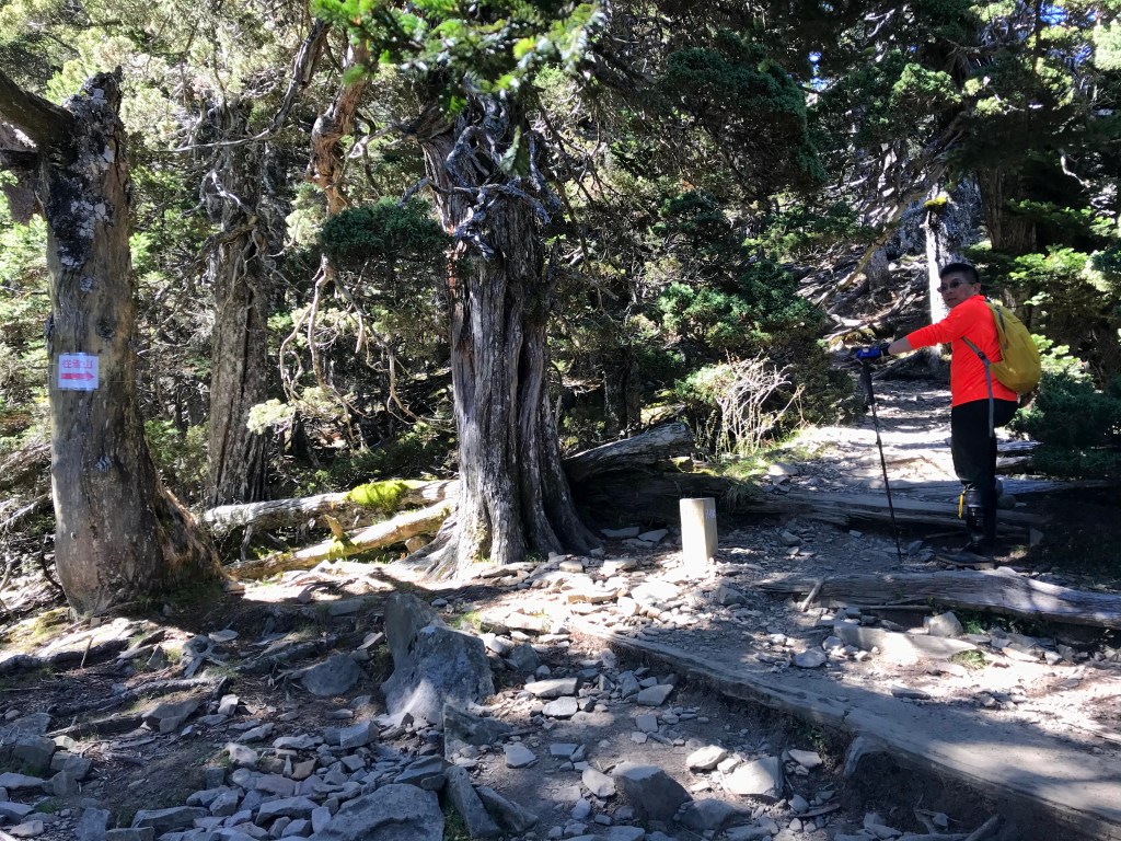 上圖:在玉山圓柏樹追上Elvis。他表示頭痛的現象還沒有緩解,因此我們決定慢點走,但是要持續走。