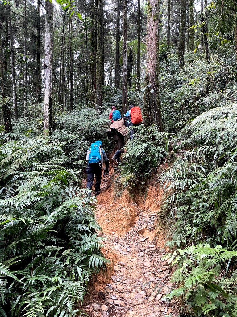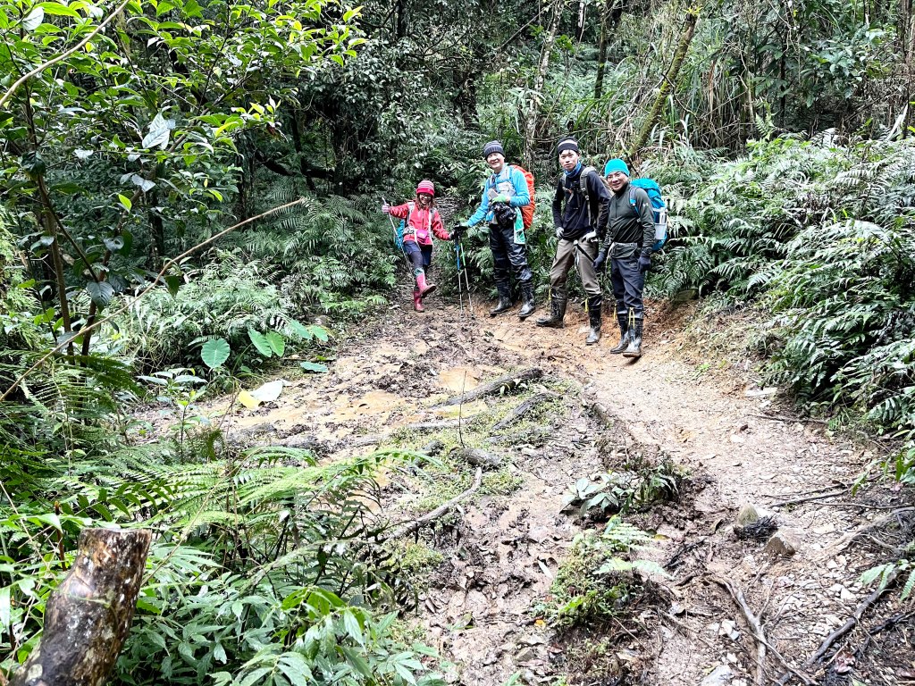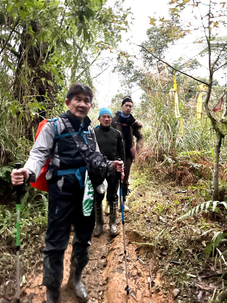 上圖:今天在松蘿湖邊,大伙的背包無法落地,因為全部是爛泥!而且要小心不要滑倒!