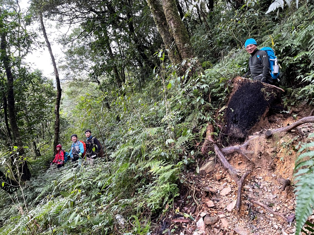 影片:水龍頭營地的回程動態。知道伙伴們想休息一下,但是我給大伙建議,休息5分鐘就走,這樣就不用摸黑,我預估一小時就可回到停車場。16:41
