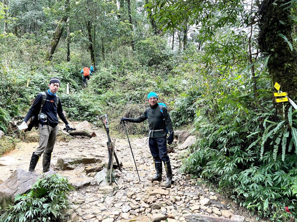 上圖:追上了之前先起登的山友,他們是重裝!準備要在松羅湖夜宿一晚。08:07