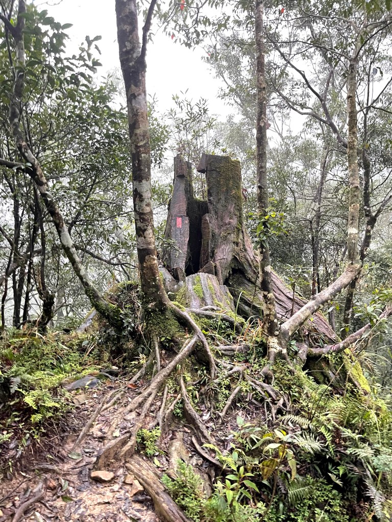 影片:在山徑4.5K處有一棵被踞掉的檜木。15:15