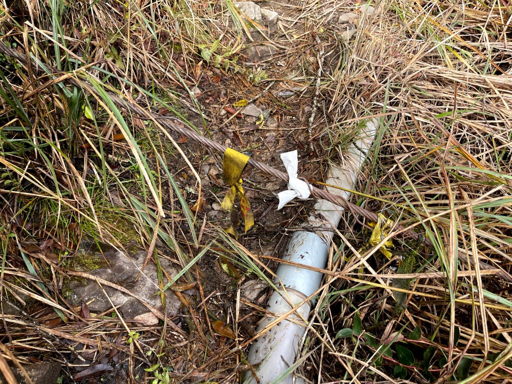 上圖:剛起登路徑上會有一條橫跨的鋼索,要小心不要被它給絆倒了。Smile專注在攝影,剛起登就被其給絆倒了,還好人沒有大礙!