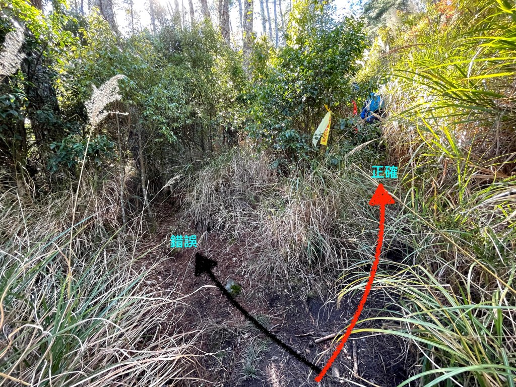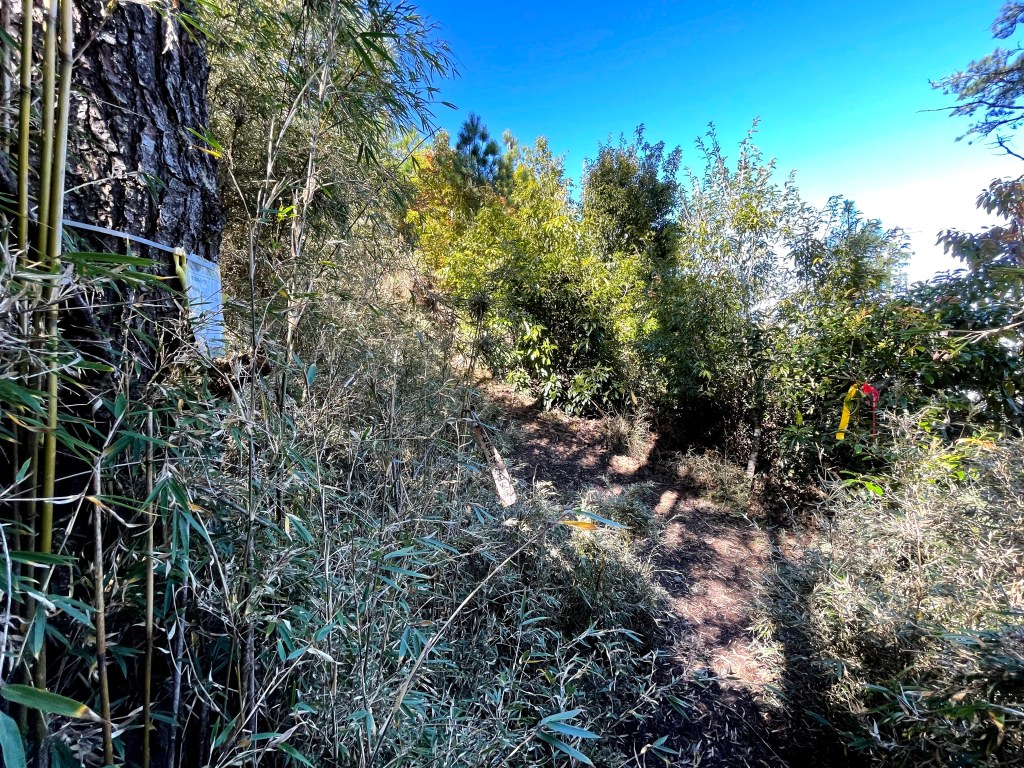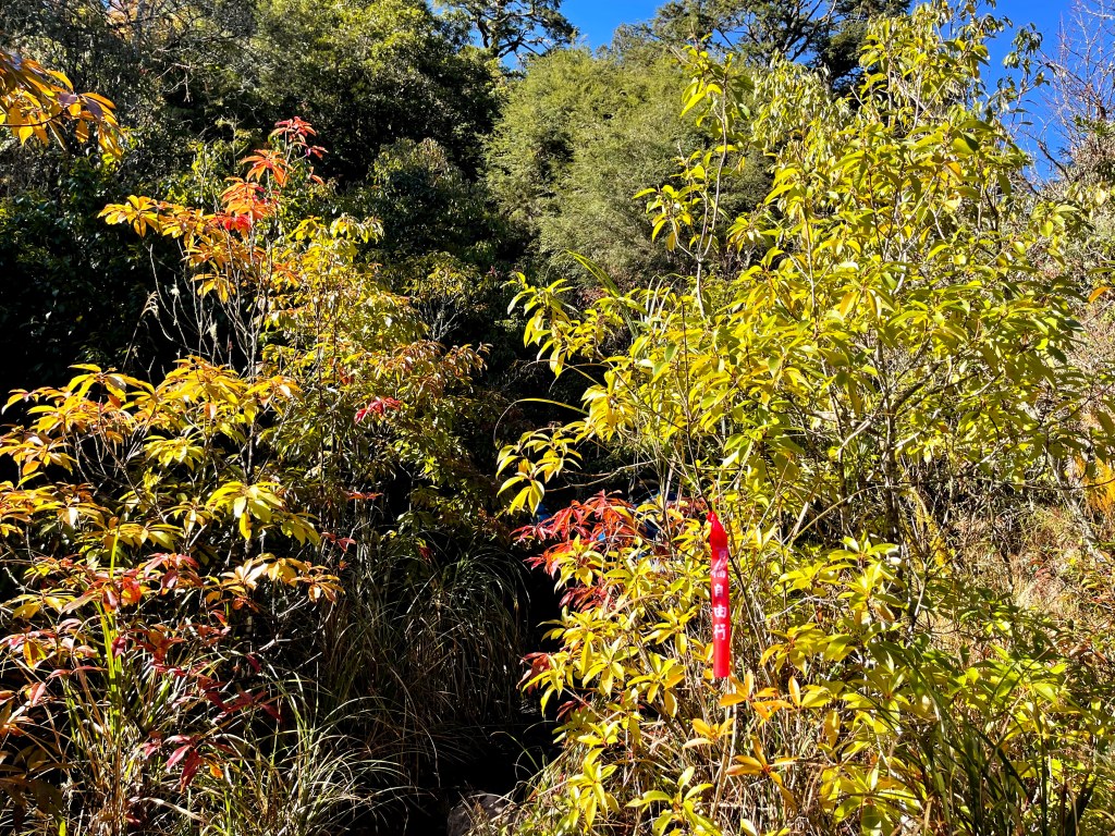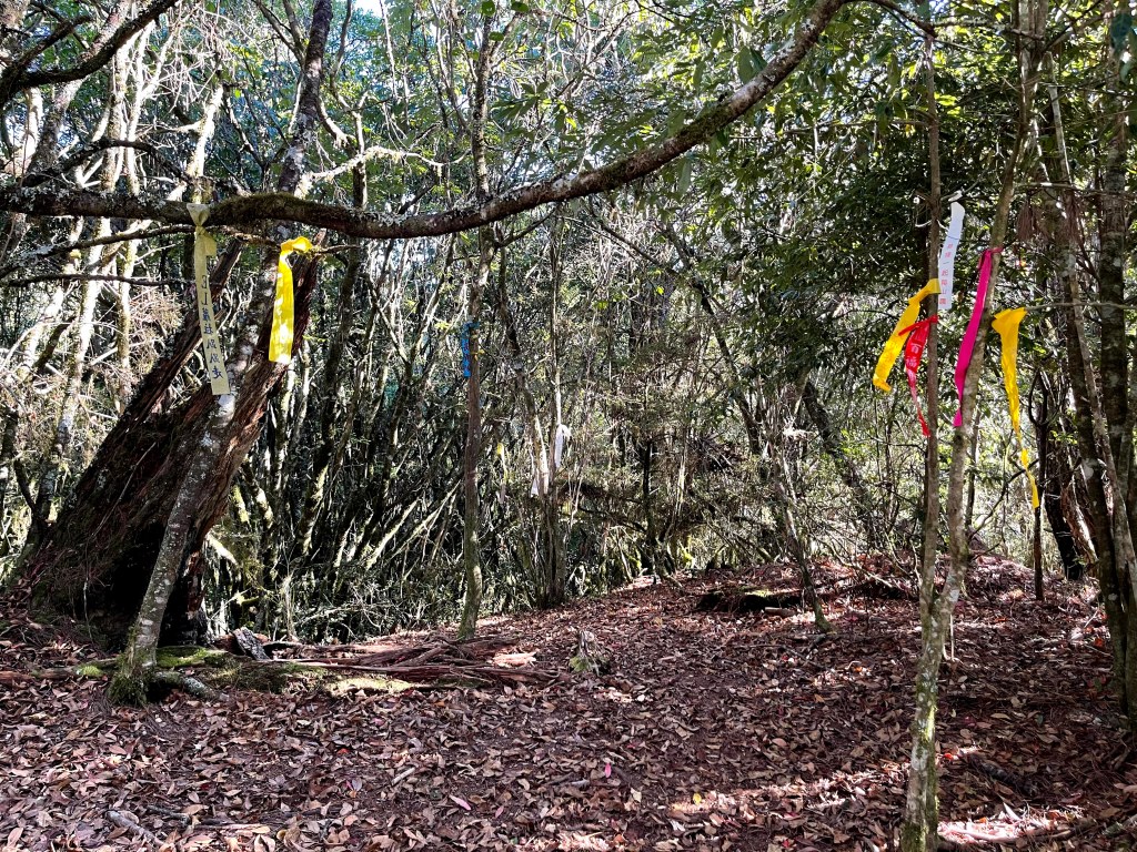 上圖:一往神木的左側走,就會看到有很多的登山布條。16:17