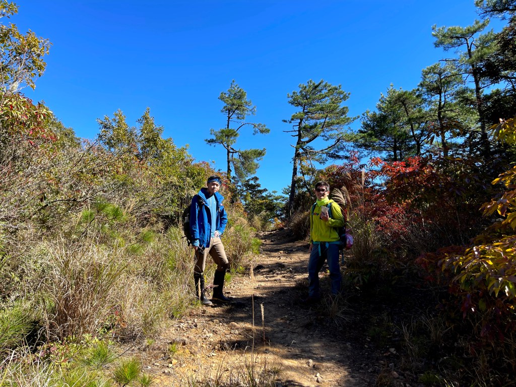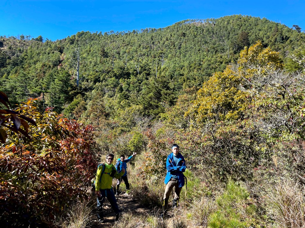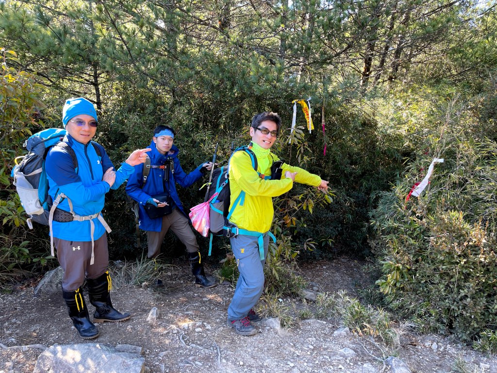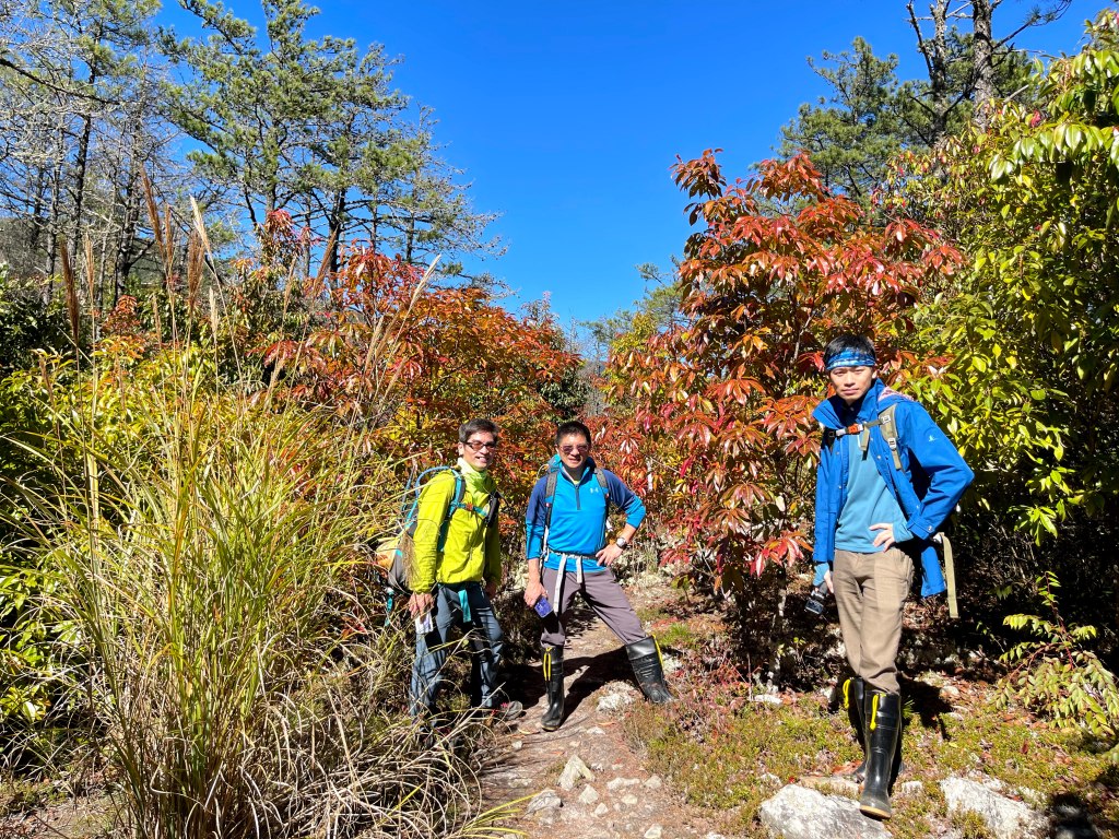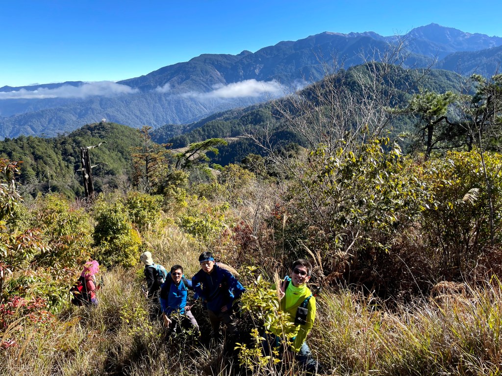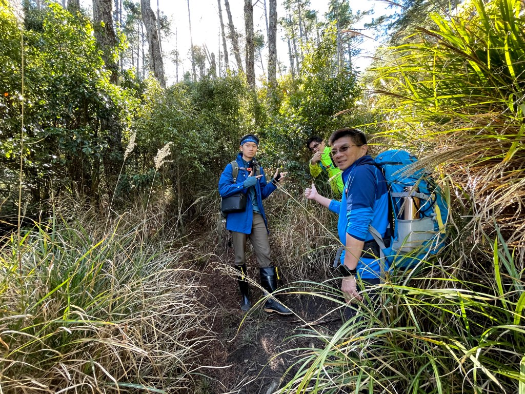 起登前,有與Andy大哥講好,我們4人需要拍攝或空拍,因此時間上比較不一定,在可以趕路時會走得比較快,但在可以空拍處會停留比較久,因而沒有等候Andy大哥的9人團隊,僅約好以羅葉尾山及馬武佐野郡山為中繼等待點,最後再一起結伴同時下山。