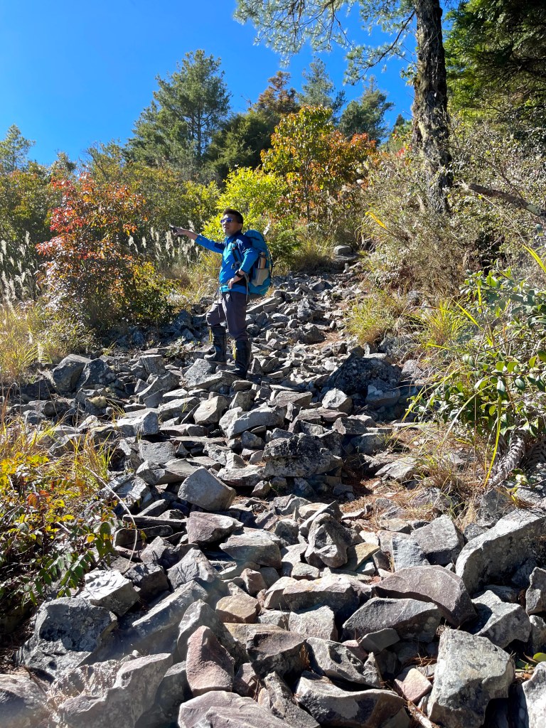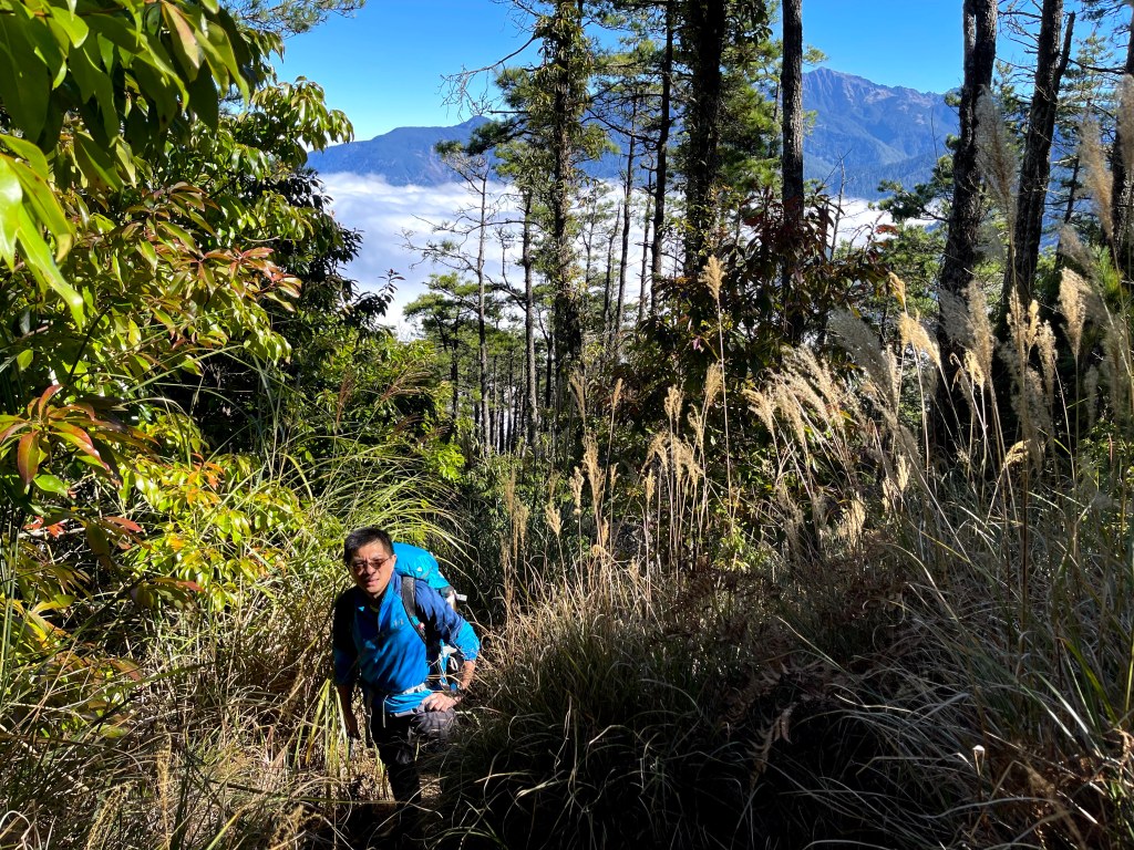 上圖:這一段比較陡且路滑,阿志在下方指引。18:21