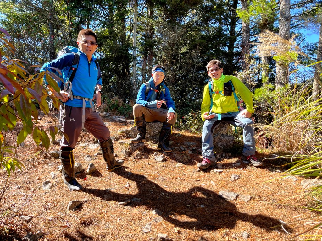 影片:來到了馬武佐野郡山。可以看到百岳環繞!阿志說他覺得身體在冷了,其實不只是他覺得,我也覺得氣溫突然驟降,感覺上溫度只有3度C吧?趕緊把外套給穿上!16:29