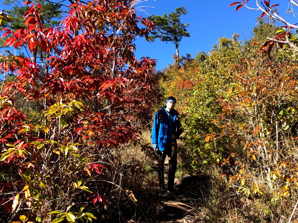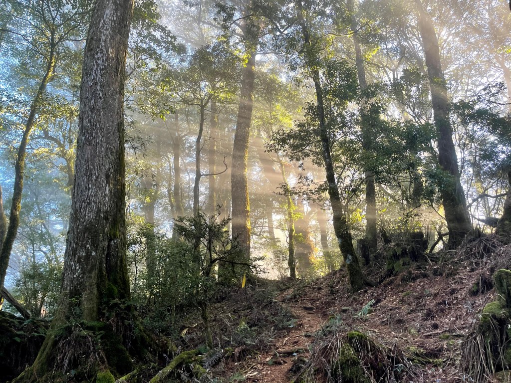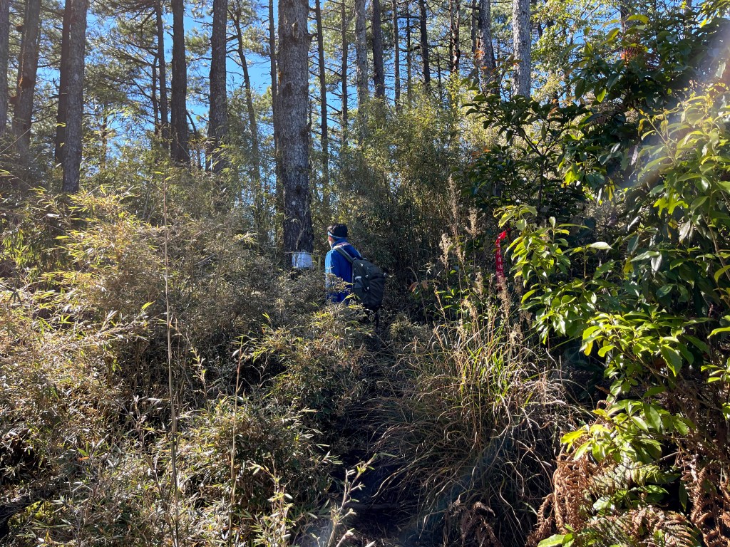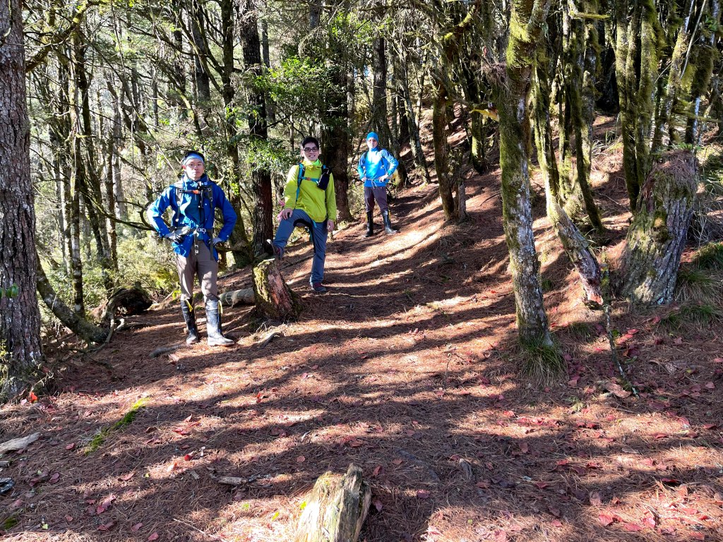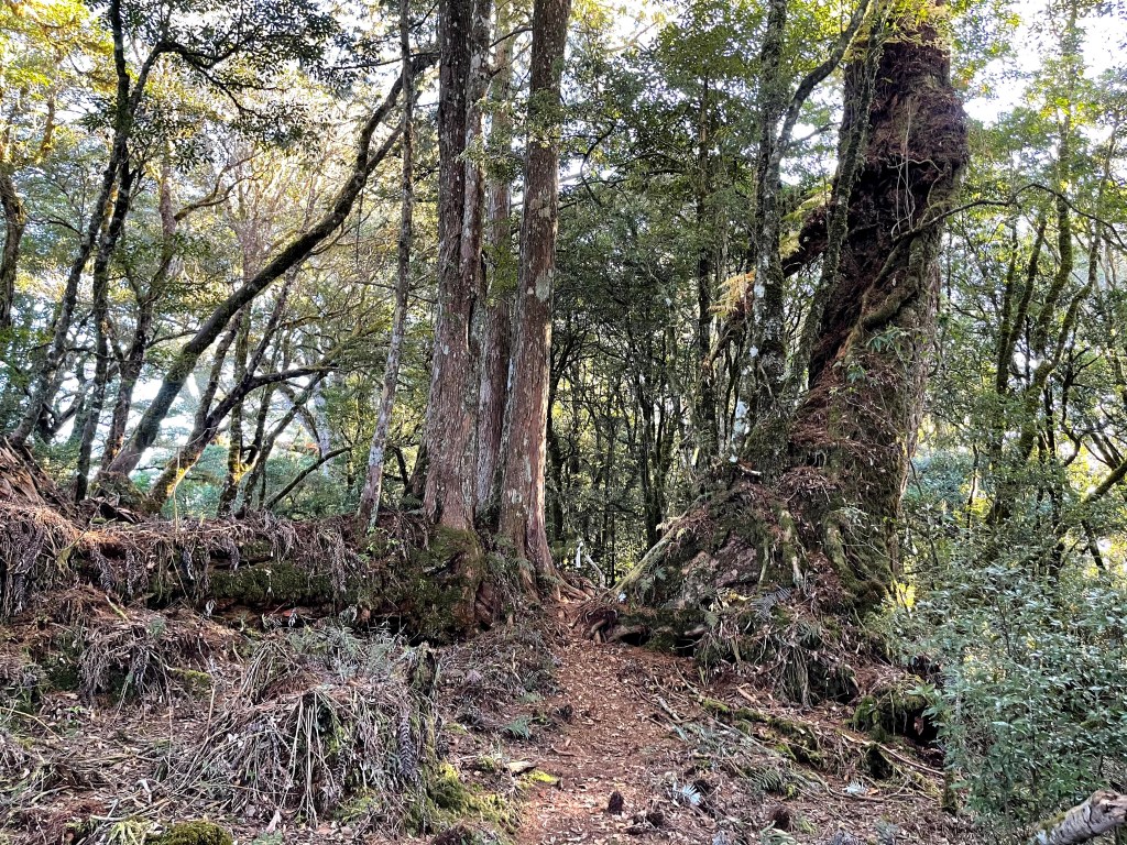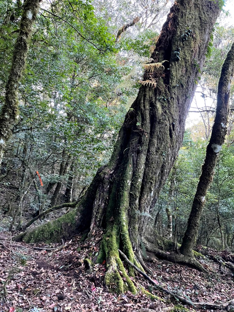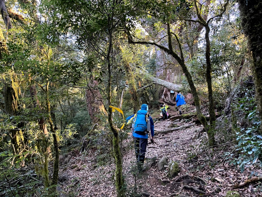 而由羅葉尾山往馬武佐野郡山邁進的過程中,路徑是緩下且為松針泥土的路徑,都是好走的山徑,且有一大段會看到很多的神木或巨木,唯一的缺點就是這一段路上,有時登山布條會稍微稀少,因此請讀者朋友們,一定要帶上具有離線功能GPS的APP,或是GPS裝置等,在不確定路徑時可用來比對正確方向。在這段路上,神木或巨木是最大的吸引力,會讓我們手機記憶卡容量用到不足。
