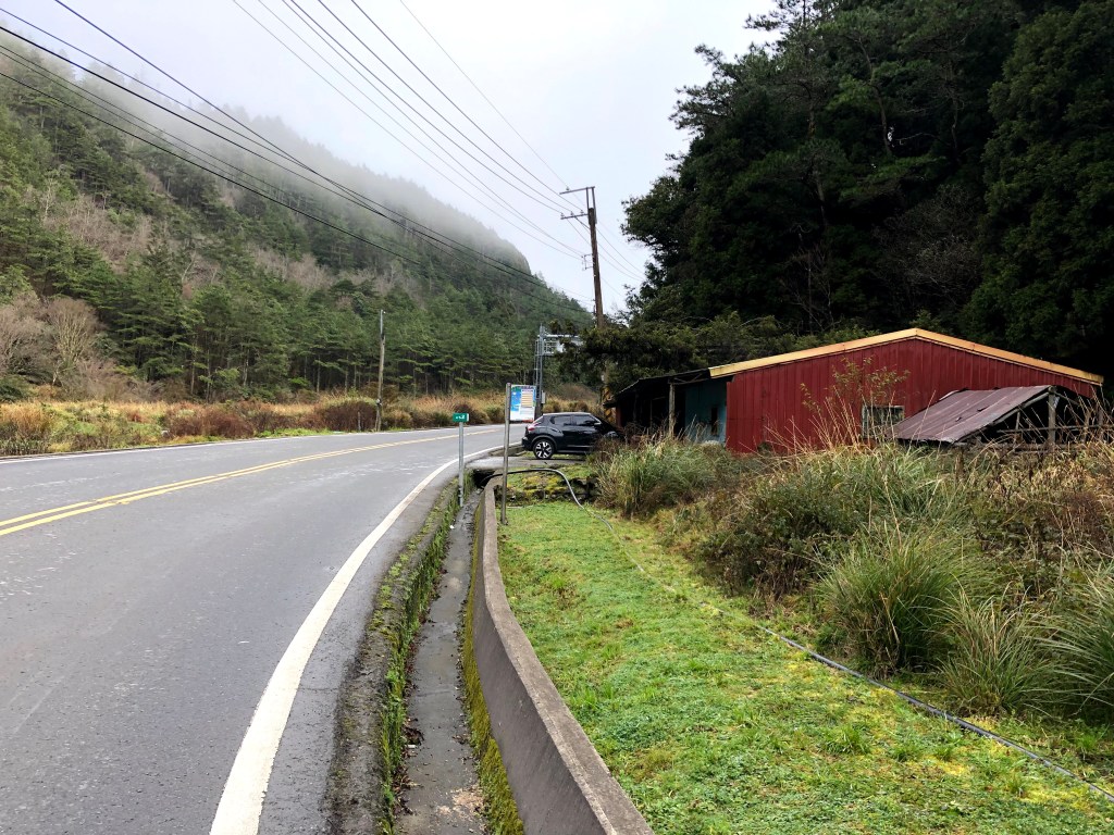 上圖:前方的綠色路牌,就是「馬鰣橋」(台7甲50.5K) 所在,接駁車停在橋邊右側空地上。