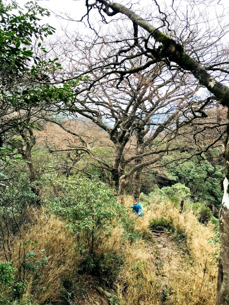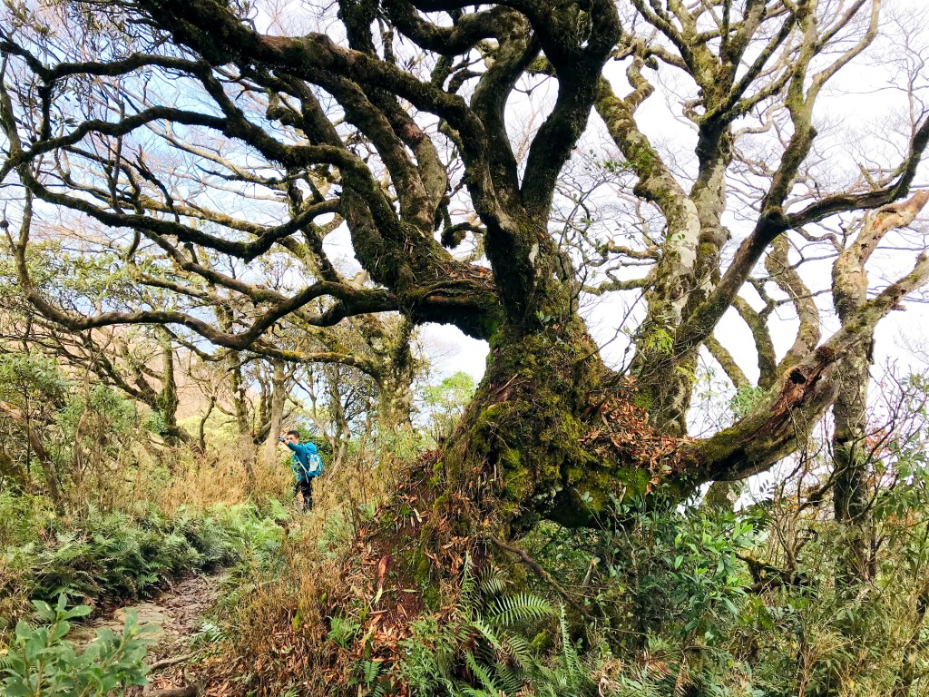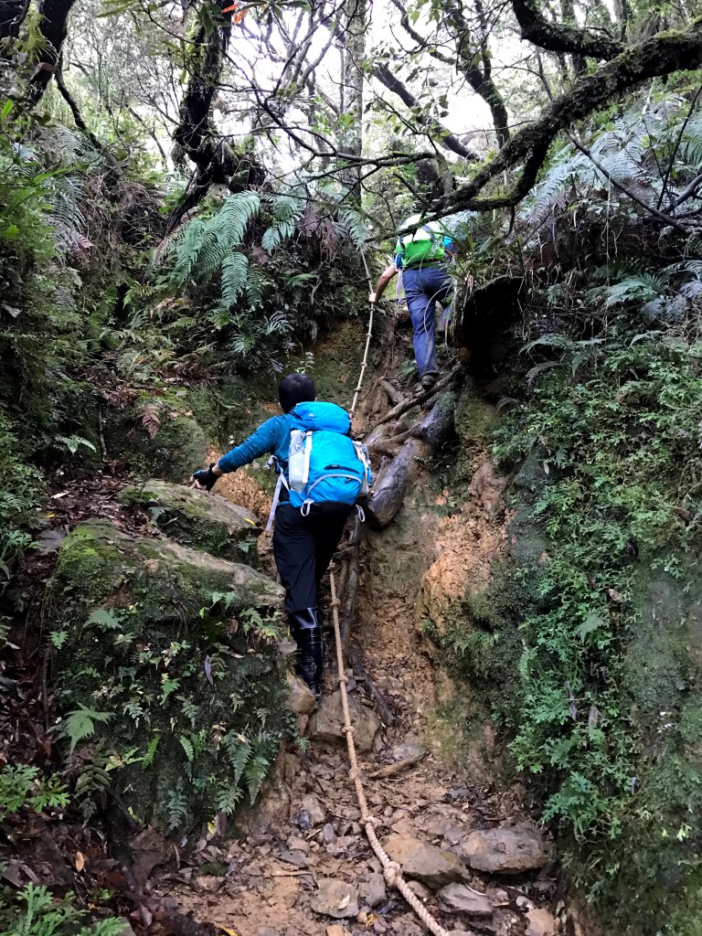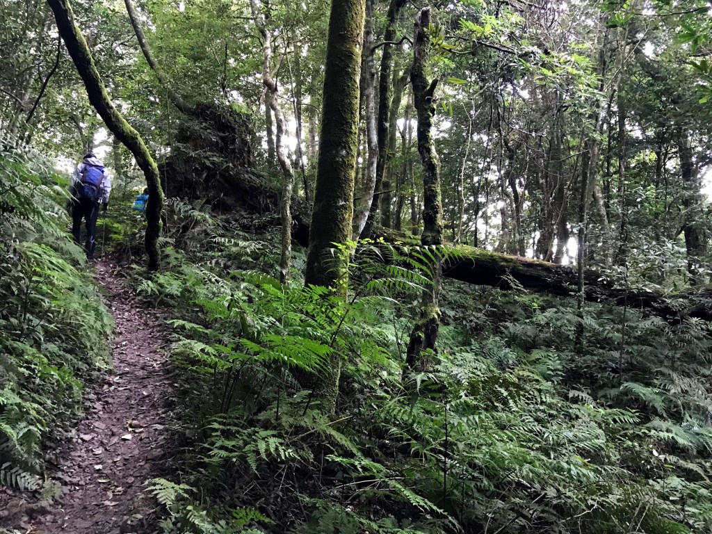 上圖:攀爬北插天山最後陡上1.5K的部分,遍佈了許多國寶級的山毛櫸,每到秋冬山毛櫸綠葉轉黃時,會令人美不勝收。