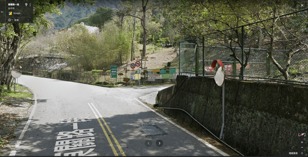 上圖:開車由台8線36.2K處右轉進台電巷,開到此停車岔找路邊停車,可以看到照片中的路邊為紅線,表示不能停這一側,要停另一側。可往左前繼續開左側路邊皆可停車,或者在抵達此岔路口前的右側路邊就可以開始停車。