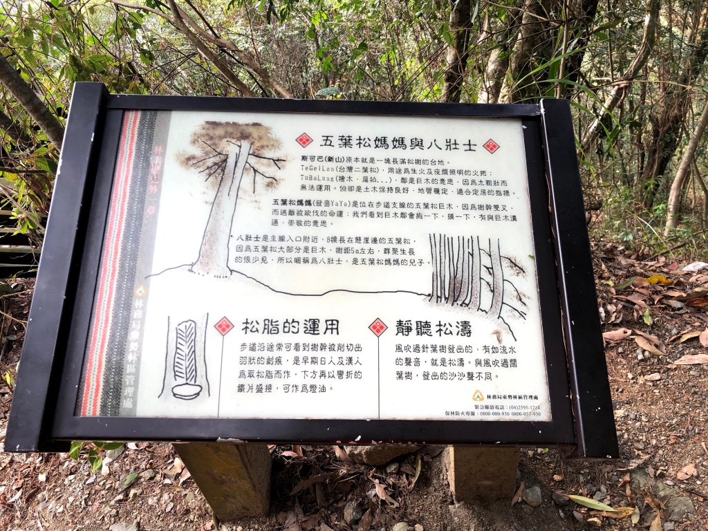 上圖:五葉松媽媽旁的解說牌!當然,一定要上山與下山走不同步道,才能又看到八壯士又看到五葉松媽媽。