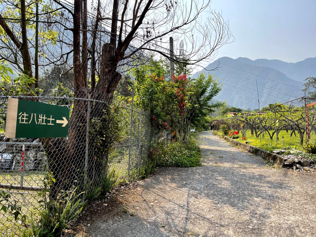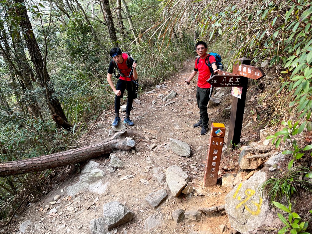 上圖:圍籬上有指示牌,指示往八壯士的方向。還是建議讀者朋友們早點起登,從停車場開始到馬崙山單趟需要8K,且需要爬高海拔約有1,300m,仍是具有難度的路線。