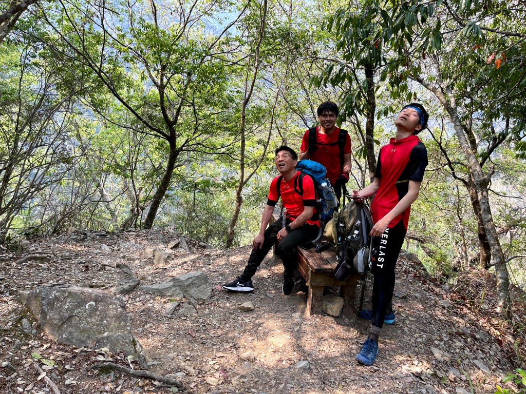 上圖:陡上的中途有椅子可供休息,此時就有其他山友在此休息。