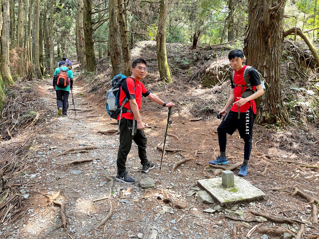 上圖:然後,繼續往前,就來到馬崙山(斯可巴)步道起點。剛好有其他山友在,幫我們合照一張。15:46
