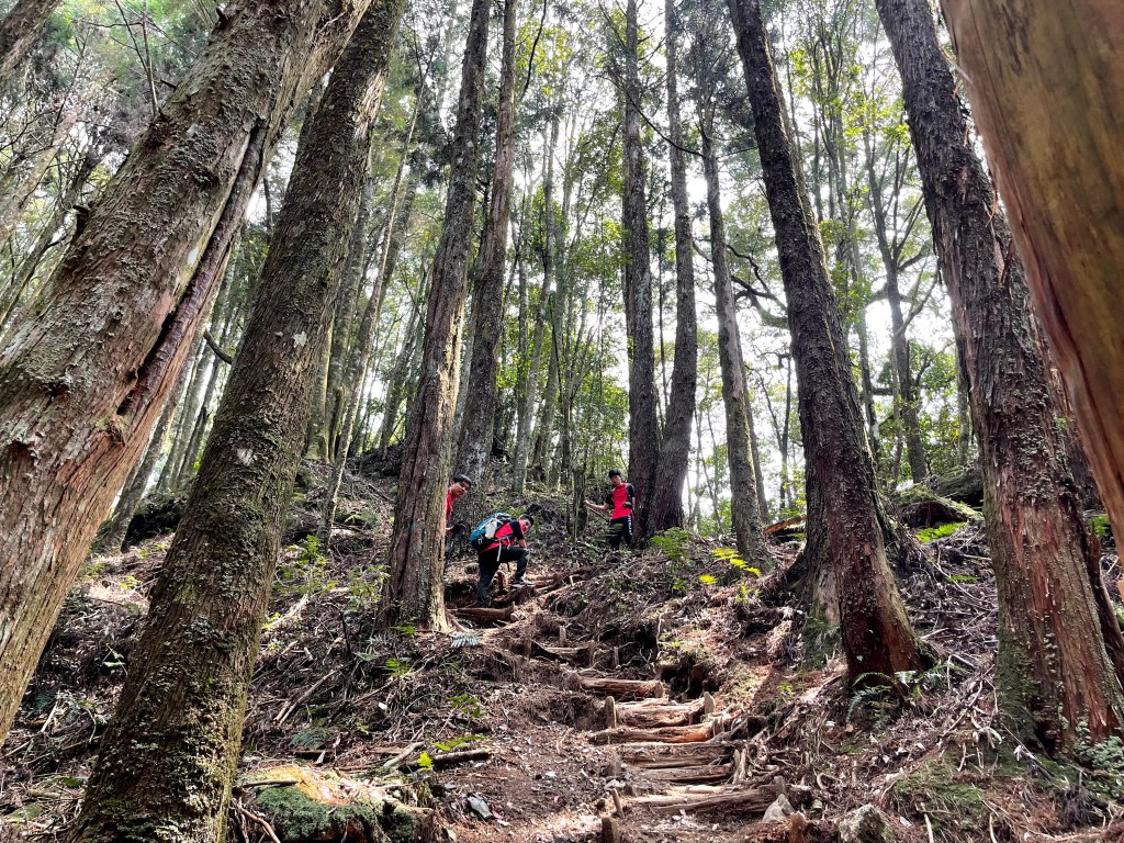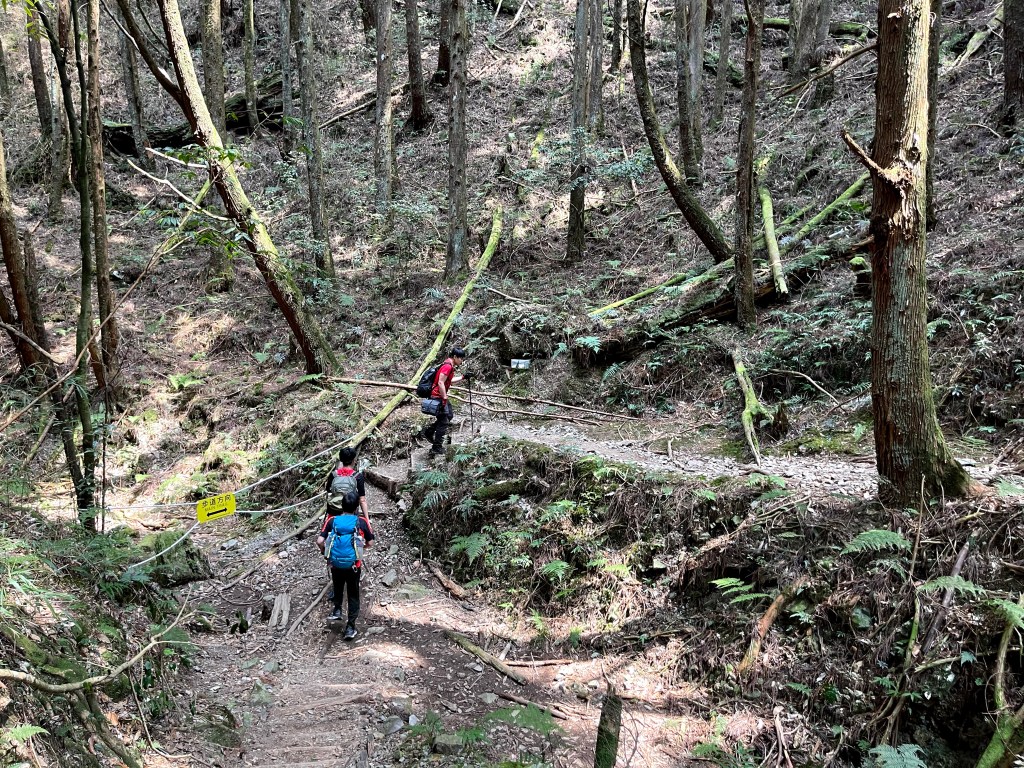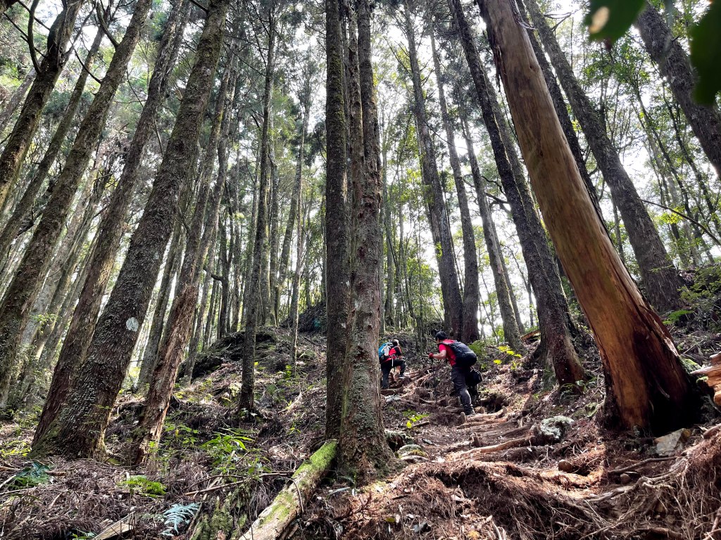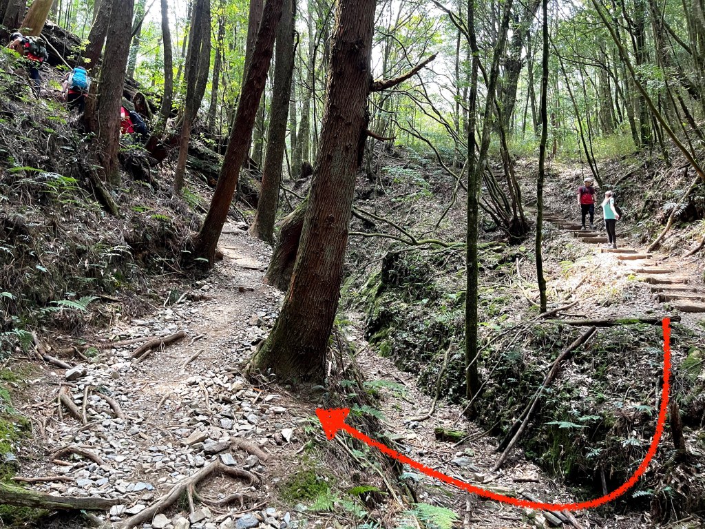 上圖:過倒木後,路徑轉為陡下,經過木枕路陡下時,就會到達前方的觀景台。