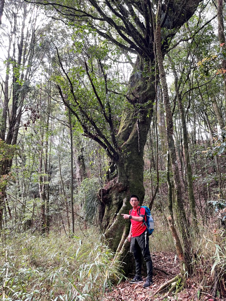 上圖:要下山了,再跟馬崙名樹拍一張。