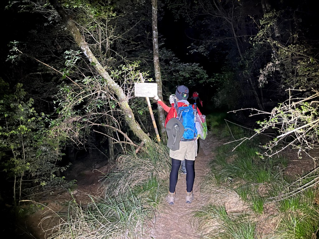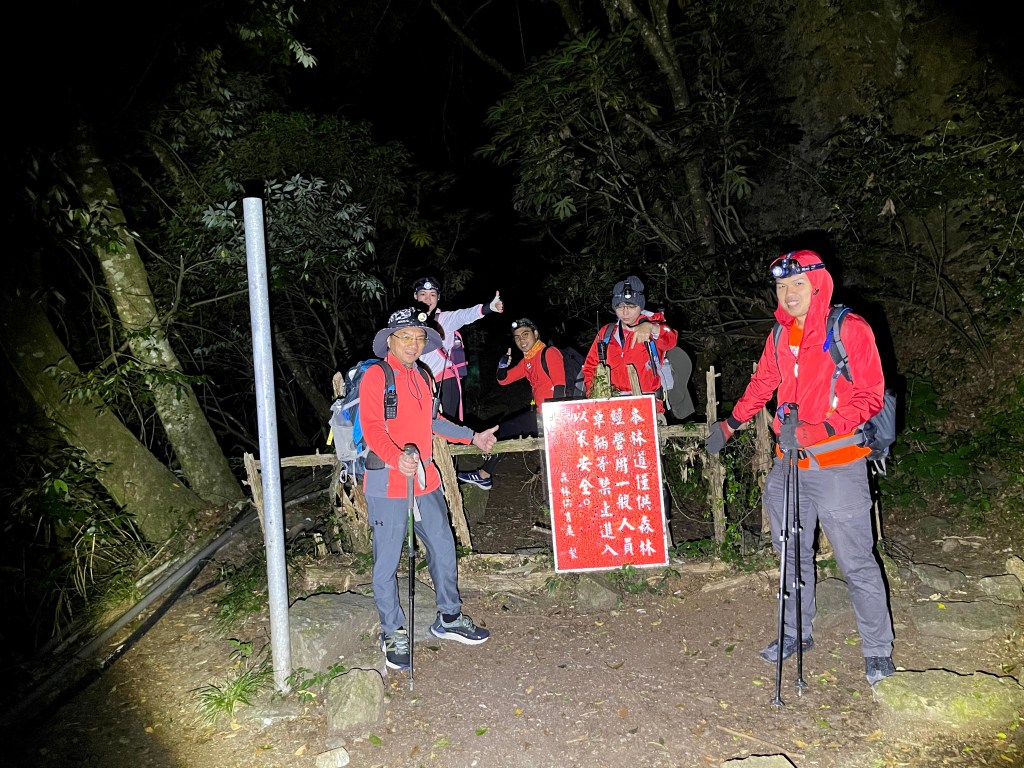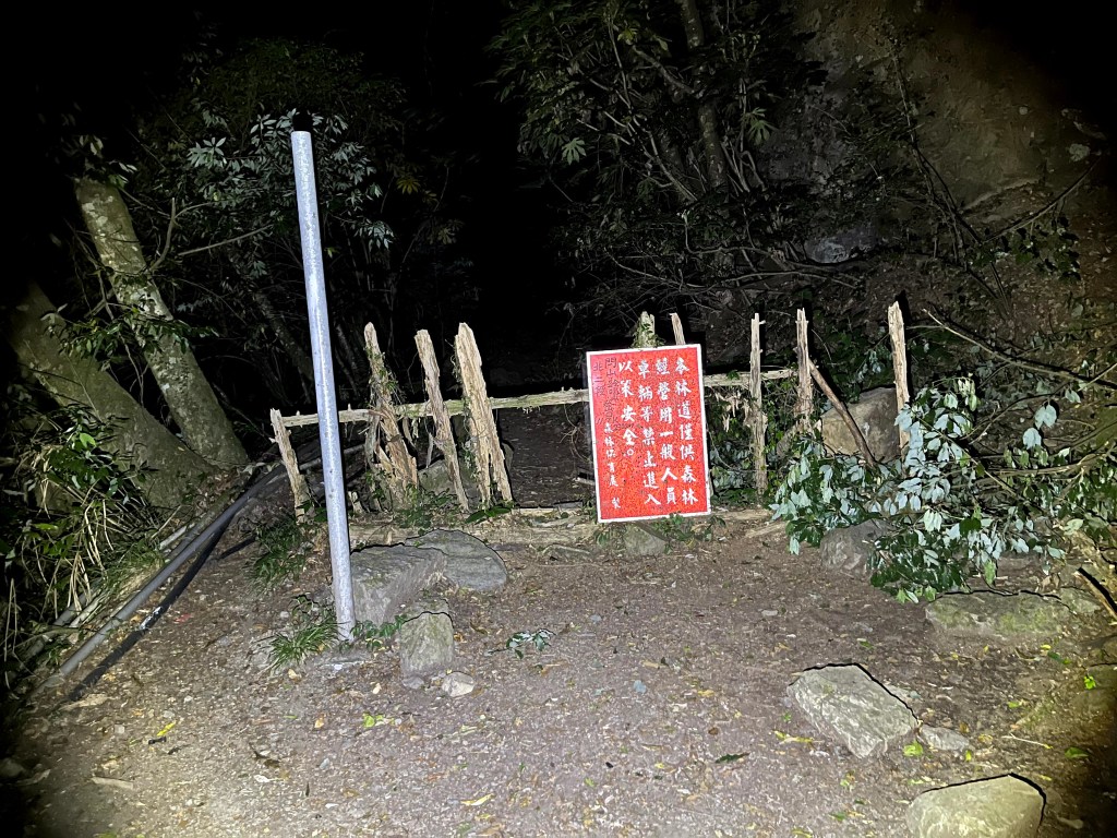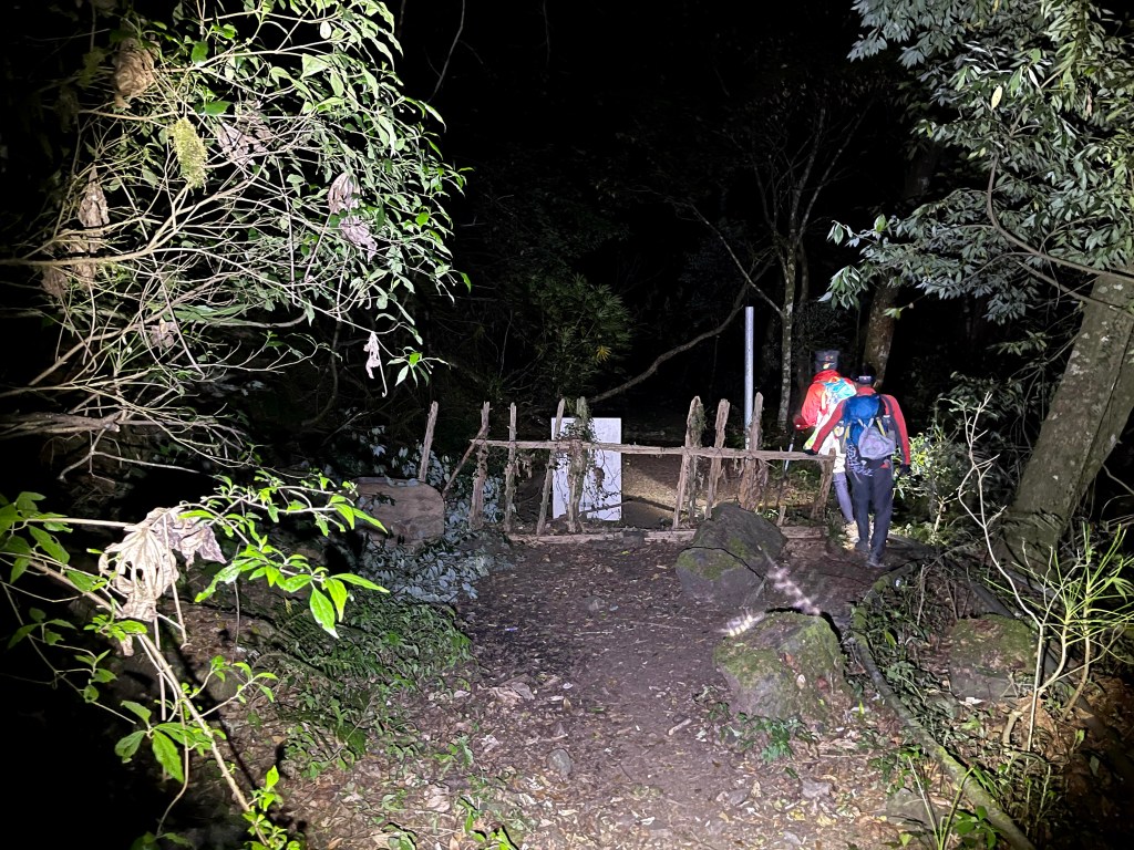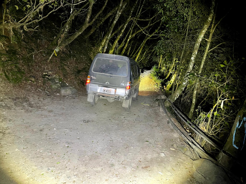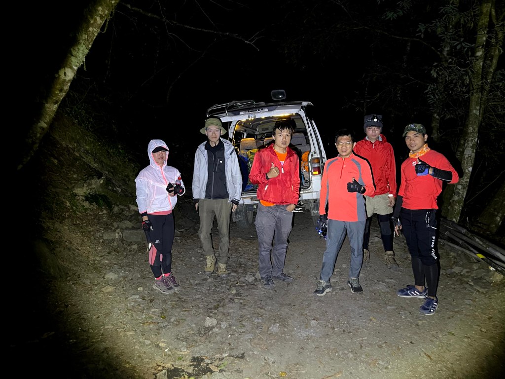 今天我們要進行的行程,在前一天就先到光果農莊–小明登山協助站進行休息。到了清晨1點搭上王小明接駁車,由台7甲線59.5K經過環山部落,過了清泉橋(台7甲線65K)後左轉,立即進入730林道,接下來就像是雲霄飛車似的搖晃11.7K的林道,要由海拔約1,500m直上到海拔2,300m的11.7K木柵欄。