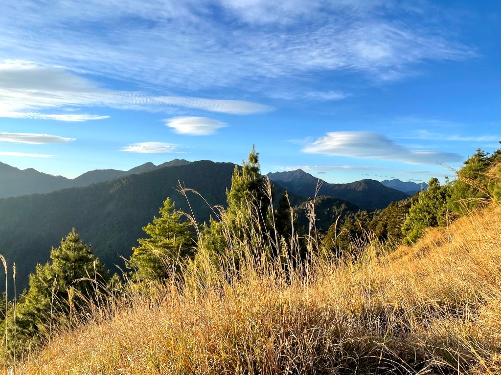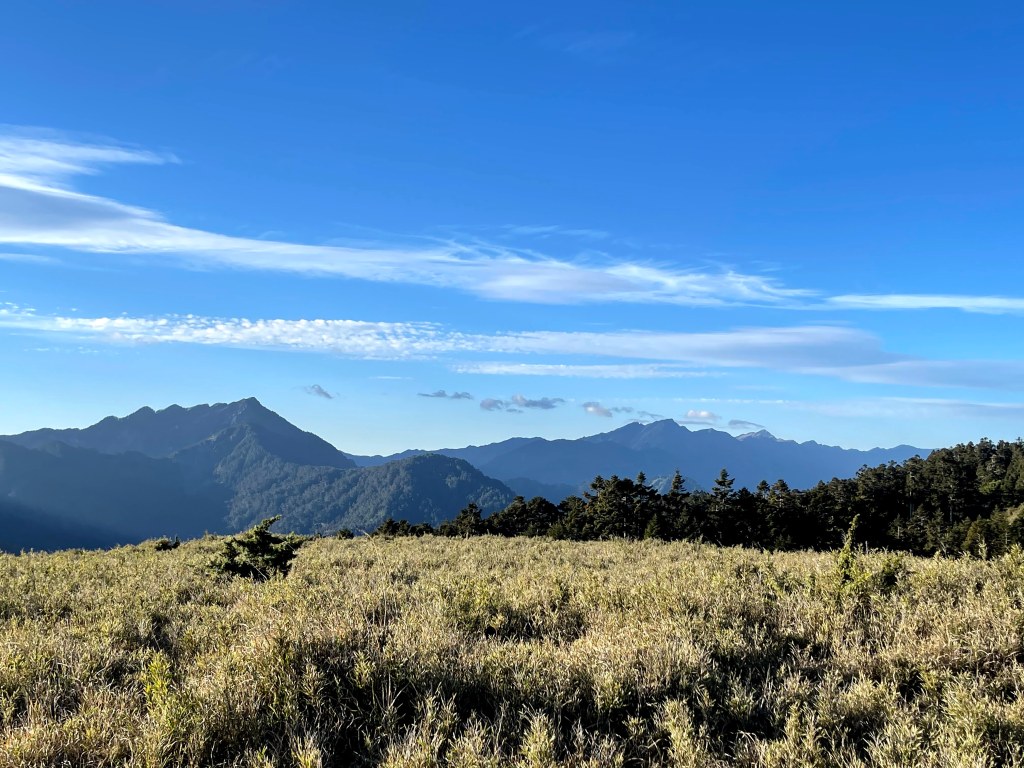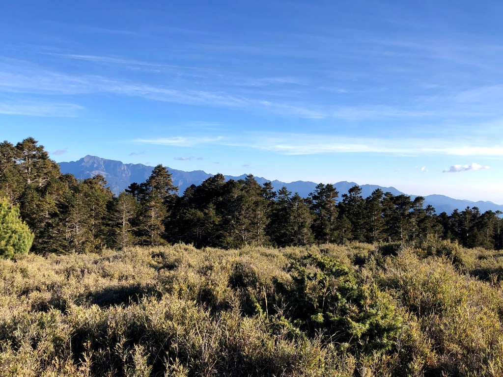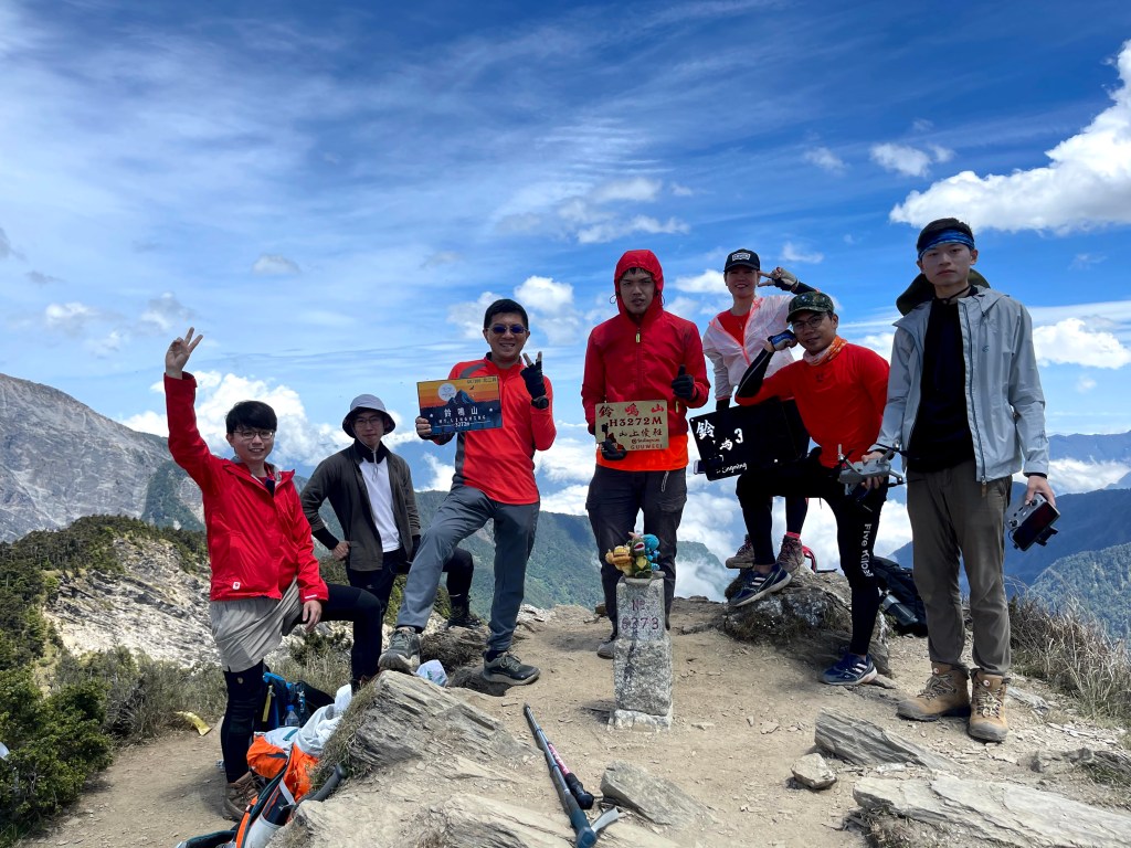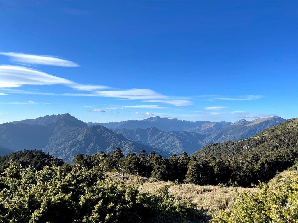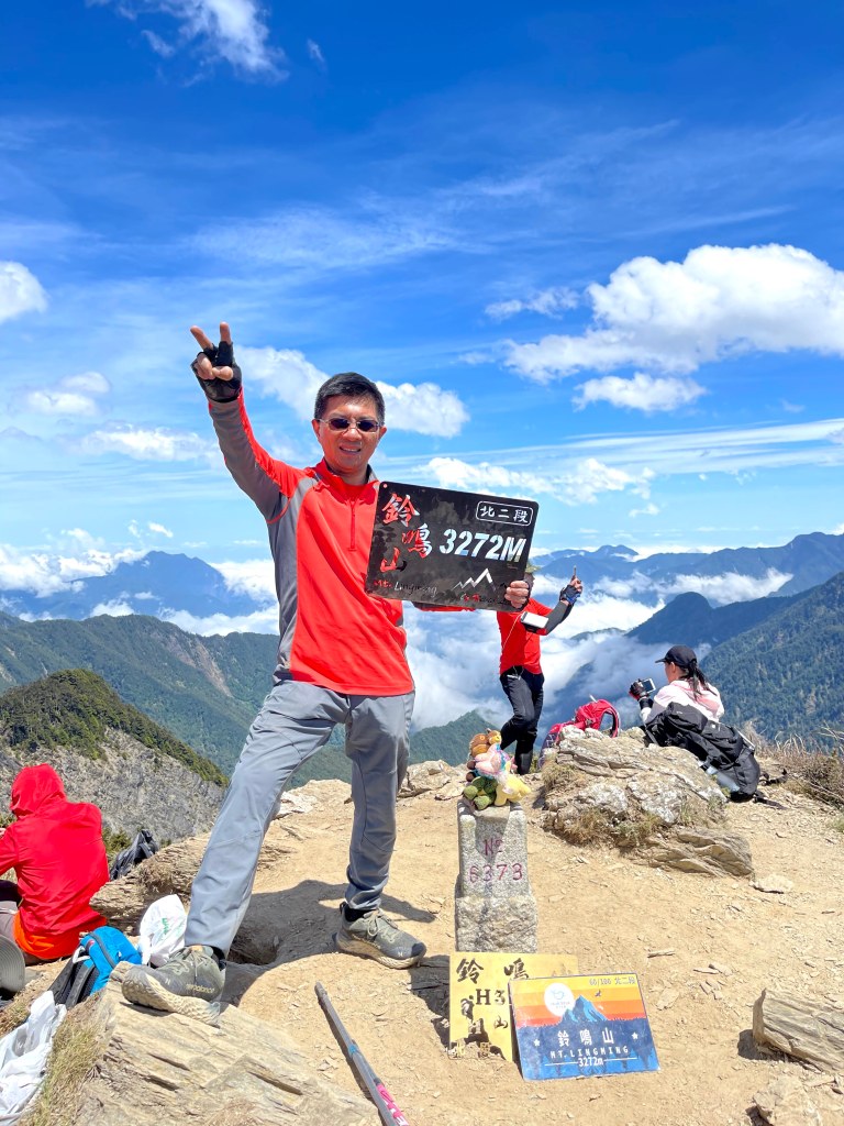 整日最辛苦的一段,就是上攻往鈴鳴山的過程,但攻頂後看到滿滿的百岳環繞,總覺得我們就站在中心點上,從審馬陣山、南湖北山、南湖大山、中央尖山、甘薯峰、鬼門關峰到無明山,畢祿山、鋸齒連峰到羊頭山,屏風山、奇萊北峰到奇萊主峰,還有探一點頭的玉山,合歡群峰、白姑大山、小劍山、大劍山、志佳陽大山、雪山主峰北稜角、雪山北峰,一直到品田山、池有山、桃山、喀拉業山等,皆一覽無遺!美啊!