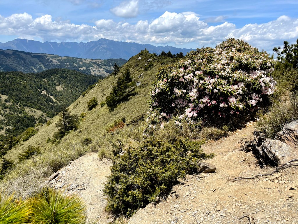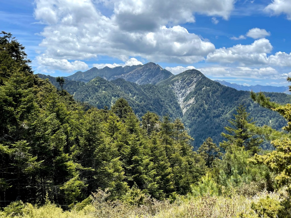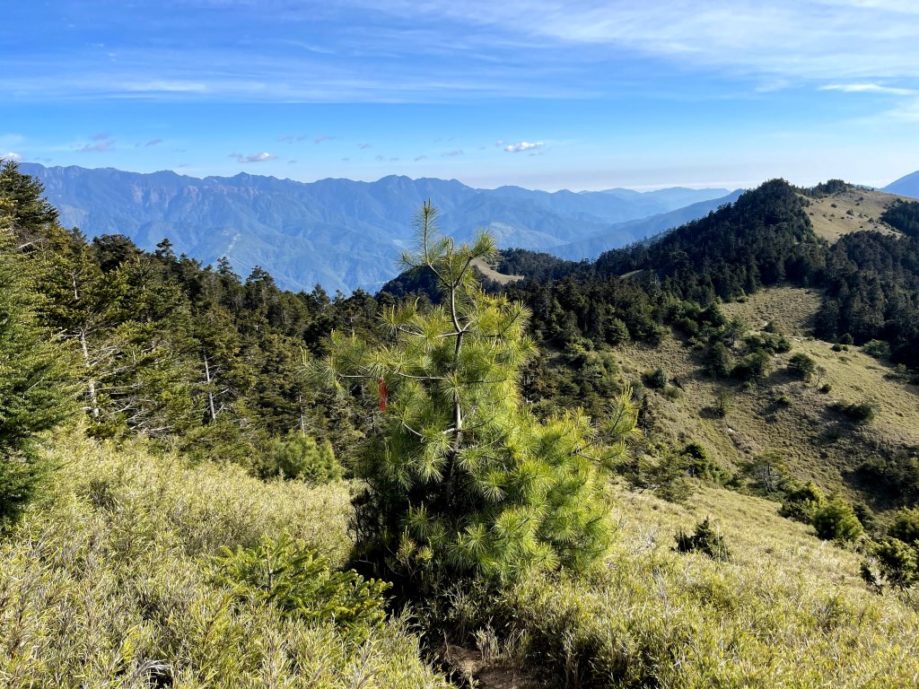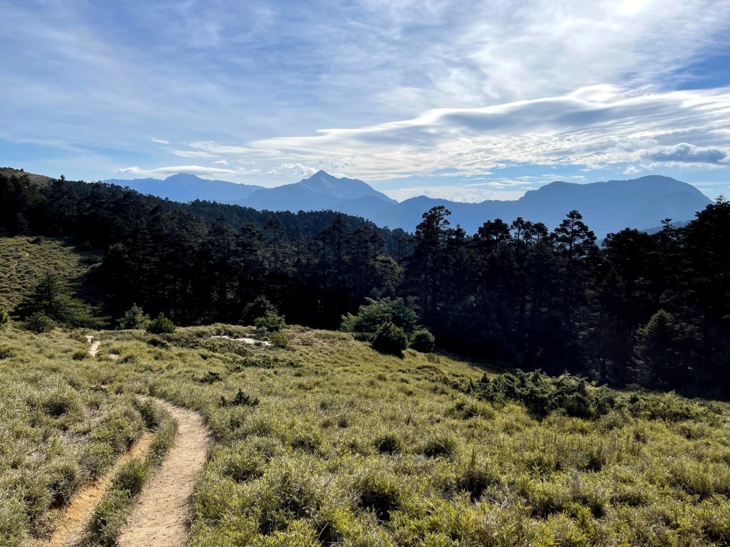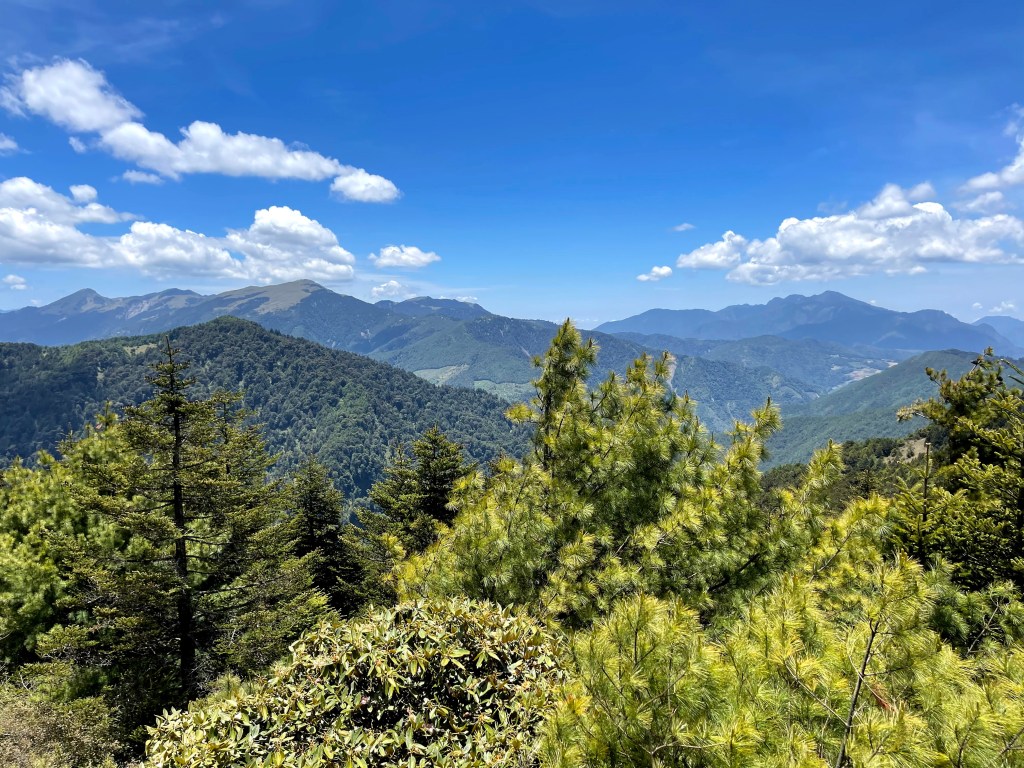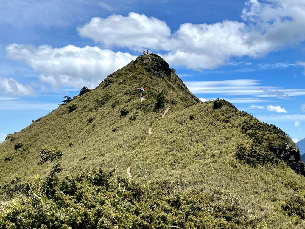 整日最辛苦的一段,就是上攻往鈴鳴山的過程,但攻頂後看到滿滿的百岳環繞,總覺得我們就站在中心點上,從審馬陣山、南湖北山、南湖大山、中央尖山、甘薯峰、鬼門關峰到無明山,畢祿山、鋸齒連峰到羊頭山,屏風山、奇萊北峰到奇萊主峰,還有探一點頭的玉山,合歡群峰、白姑大山、小劍山、大劍山、志佳陽大山、雪山主峰北稜角、雪山北峰,一直到品田山、池有山、桃山、喀拉業山等,皆一覽無遺!美啊!