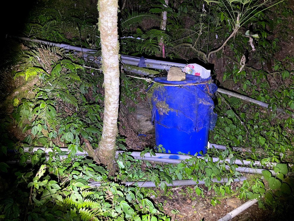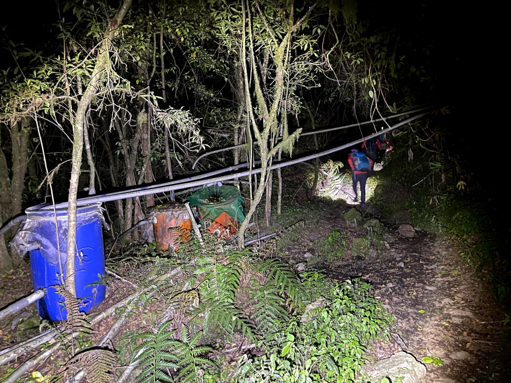 上圖:快到登山口前,水管路上有一堆的水管。