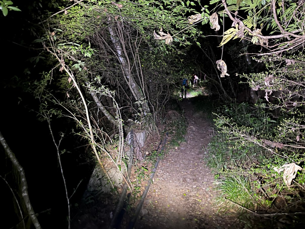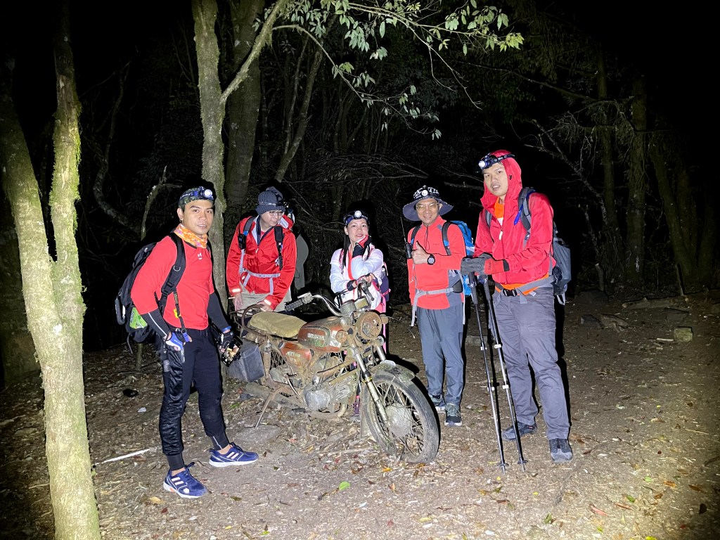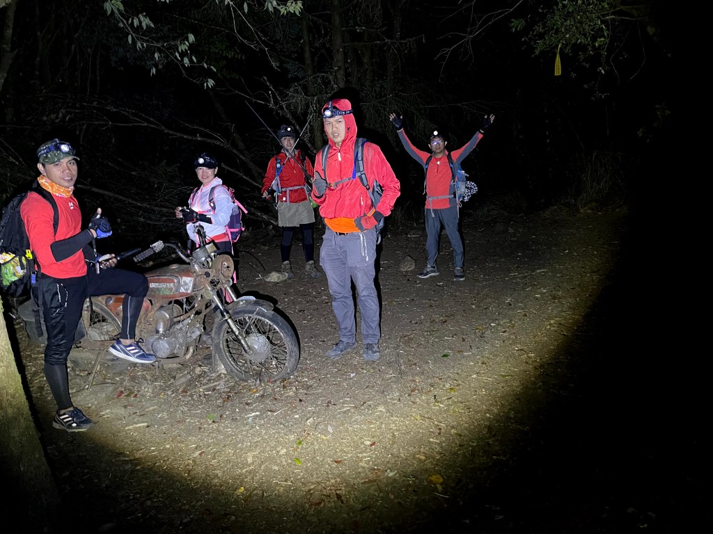 隨後沿著730林道一路往11.7K木柵攔下山,其間的25K工寮到23.2K閂山登山口之間海拔略微陡上會辛苦一些,過了23.2K閂山登山口後,就是一路緩緩而下的優美林道,此時大伙的步伐就走得更快一些,除了在18K閂山之門補拍照片,16K廢棄機車打電話給接駁車外,皆一路快走而於晚間7點多回到林道11.7K木柵欄。