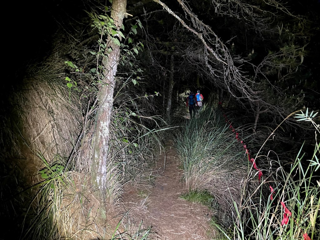 上圖:再度回到17.5K的登山口,天色已經開始轉為昏黑。18:06