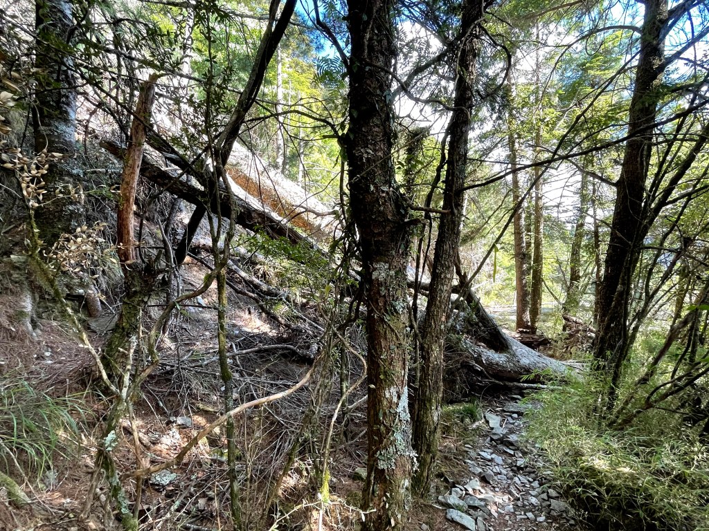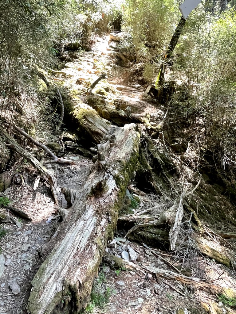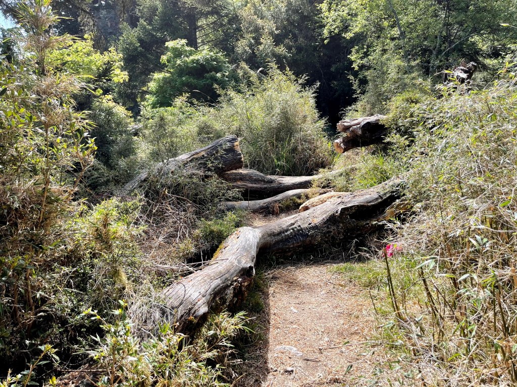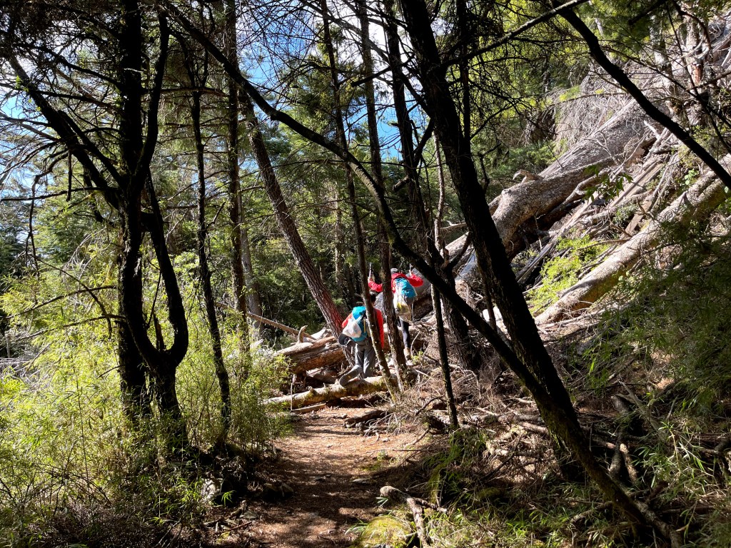 上圖:向右側走繞過倒木。