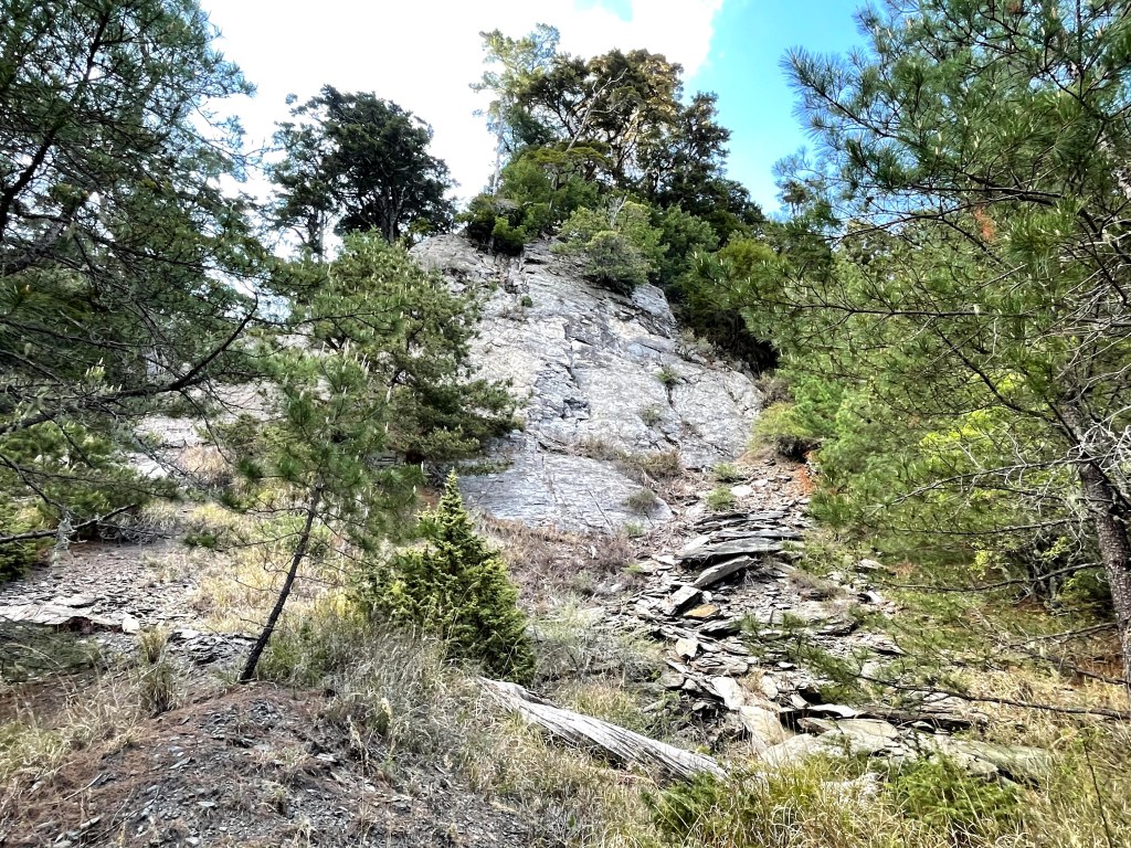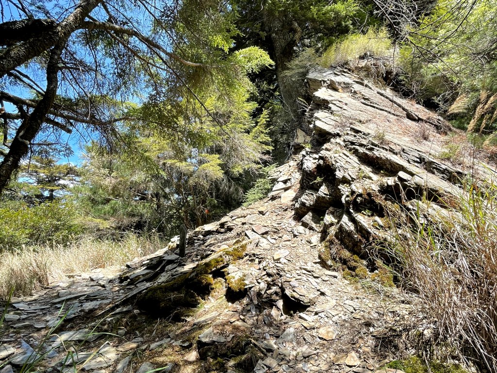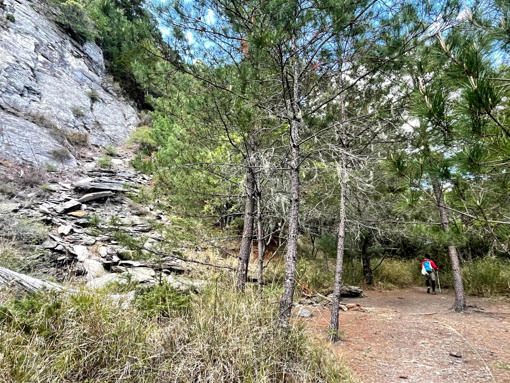上圖:岩壁區旁的林道很平坦,但不建議在此紮營,怕會有落石。