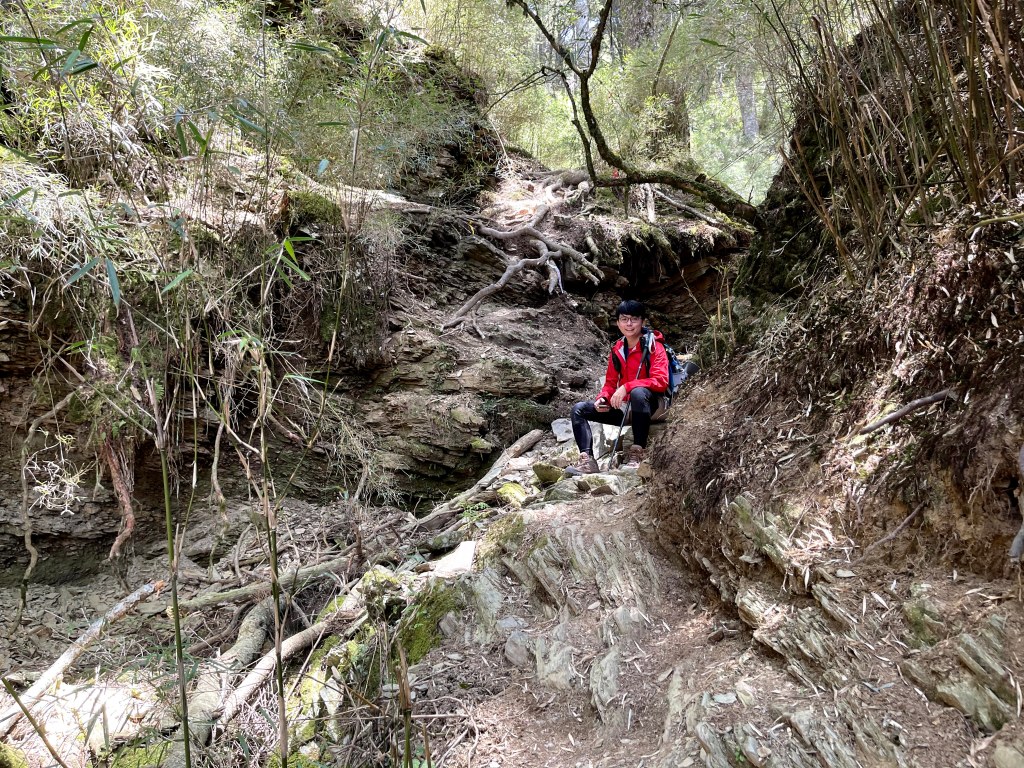 上圖:透過無線電知道Mario與小六已經快到25K工寮了,此時Kim正在等我們三人一起走。