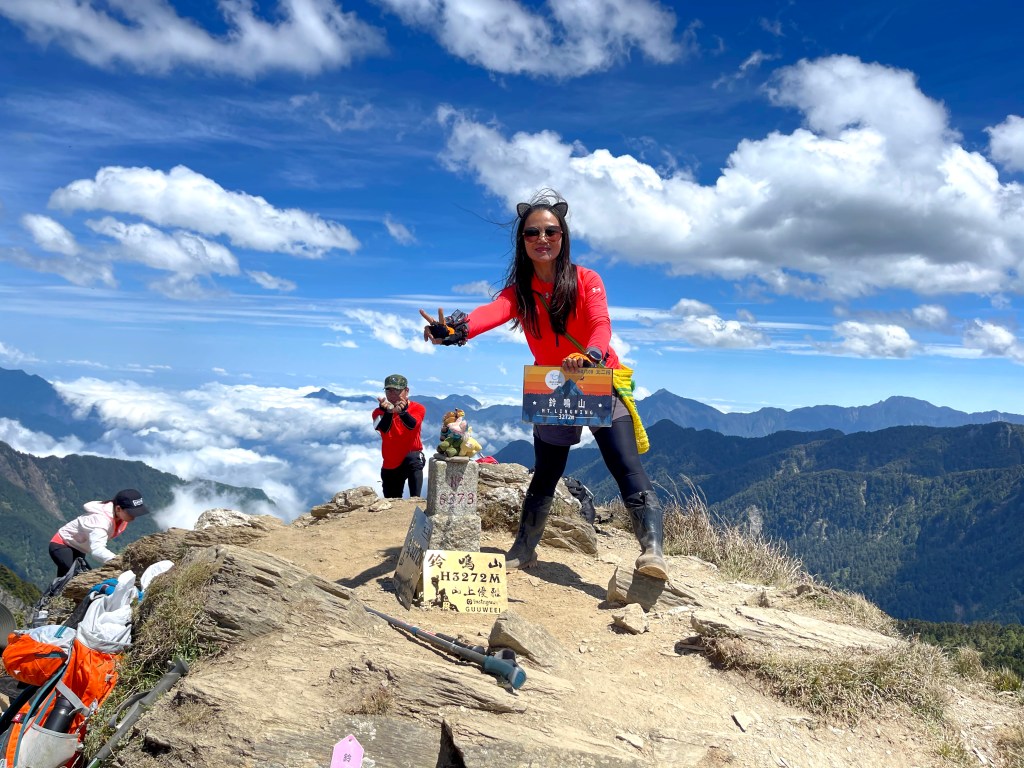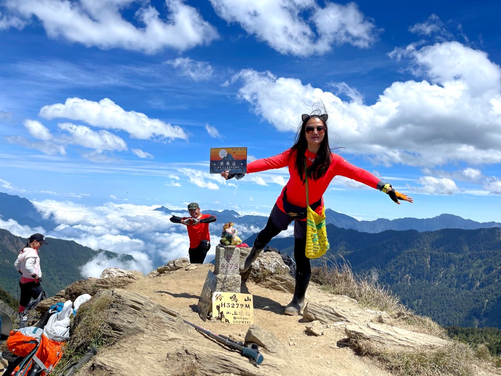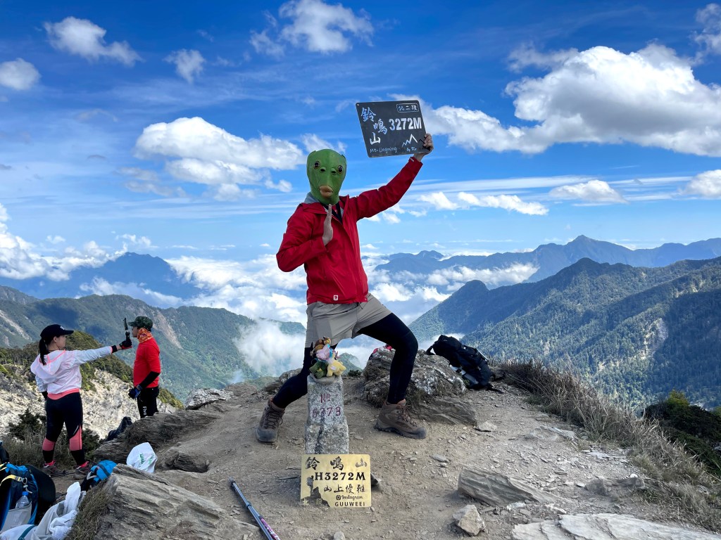 上圖:搞怪的蜥蜴人David與鈴鳴山。鈴鳴山雖為三等三角點,但是具有360度的展望。