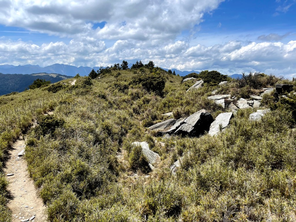 上圖:由23.2K往11.7K走,就一路都是好走路徑,且海拔還逐漸下降,可以走得比清晨來的速度更快。透過無線電,我問小六,Mario還會覺得頭痛嗎?小六回說:Mario已經沒有反應有症狀了,我相信他目前已經正常。