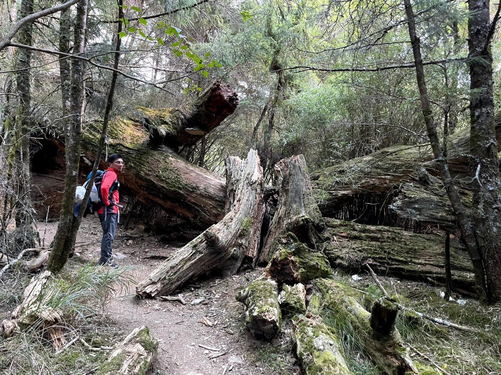 上圖:給巨大倒木拍一張,這應該是神木了吧?