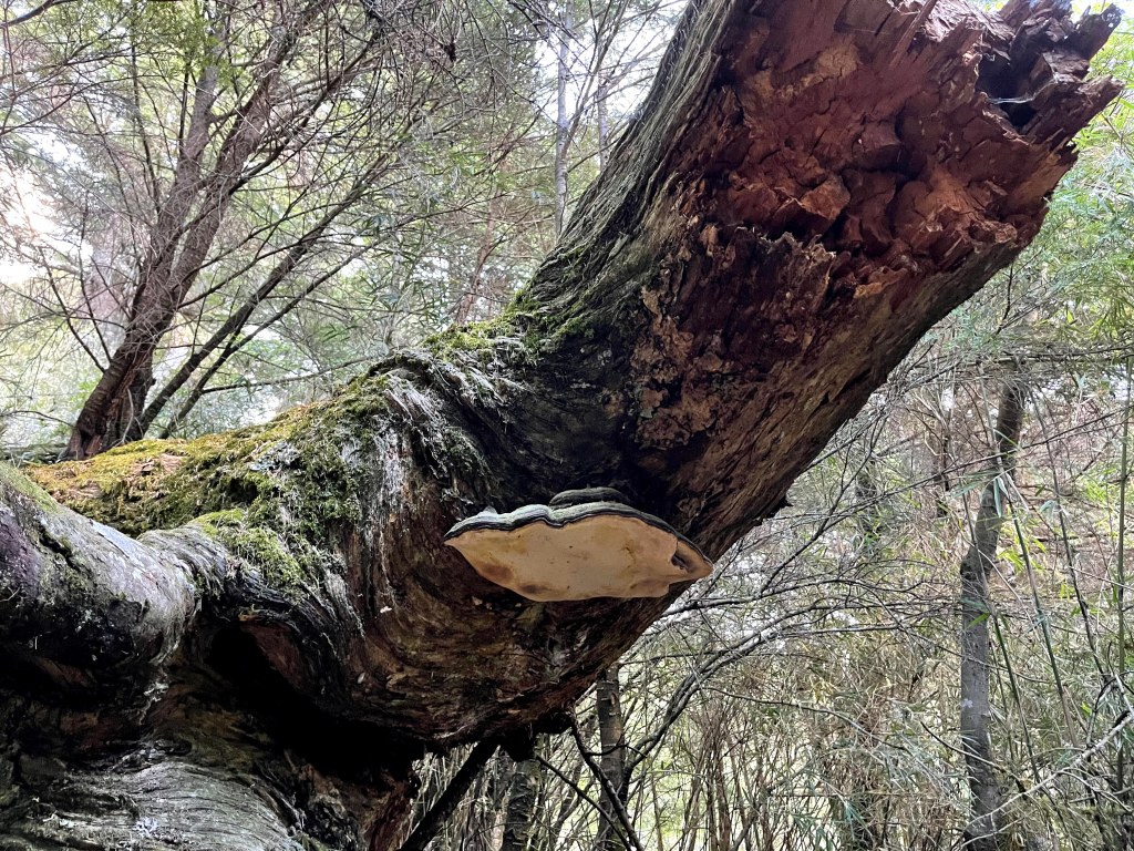 上圖:咦?倒木上有一個很大的猴板凳!