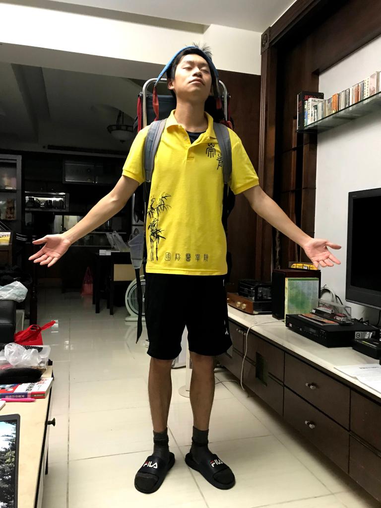 克司馬縱走,就是馬克縱走的逆行。出發前一晚,我們全部都進住到中壢姑丈Peter家裡。姑姑Pearl用豐富的晚餐招待我們,Peter還拿出30年前爬百岳的法寶,鐵架的登山背包,以現在的眼光來看,實在太炫了!Steven與我(Gosen)兩人背了半天把玩的一番。