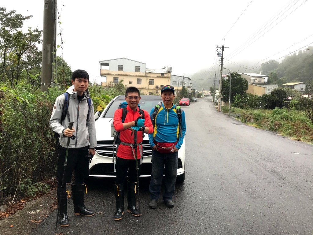 清晨5點半由中壢出發,開車到白布帆登山口的距離有120K左右,需耗時1.5小時,因此開到白布帆登山口停好車已經超過早上7點。出發前看了Google還有Windy的天氣預報,中午前是陰天而下午會出太陽,因此成行。沒有想到從國道一號下開進到台140縣道開始,一路上就在飄雨,這跟我們的預測大相徑庭,所以當我們停好車後,還討論了一下,到底應不應該撤退,還是要繼續行程?