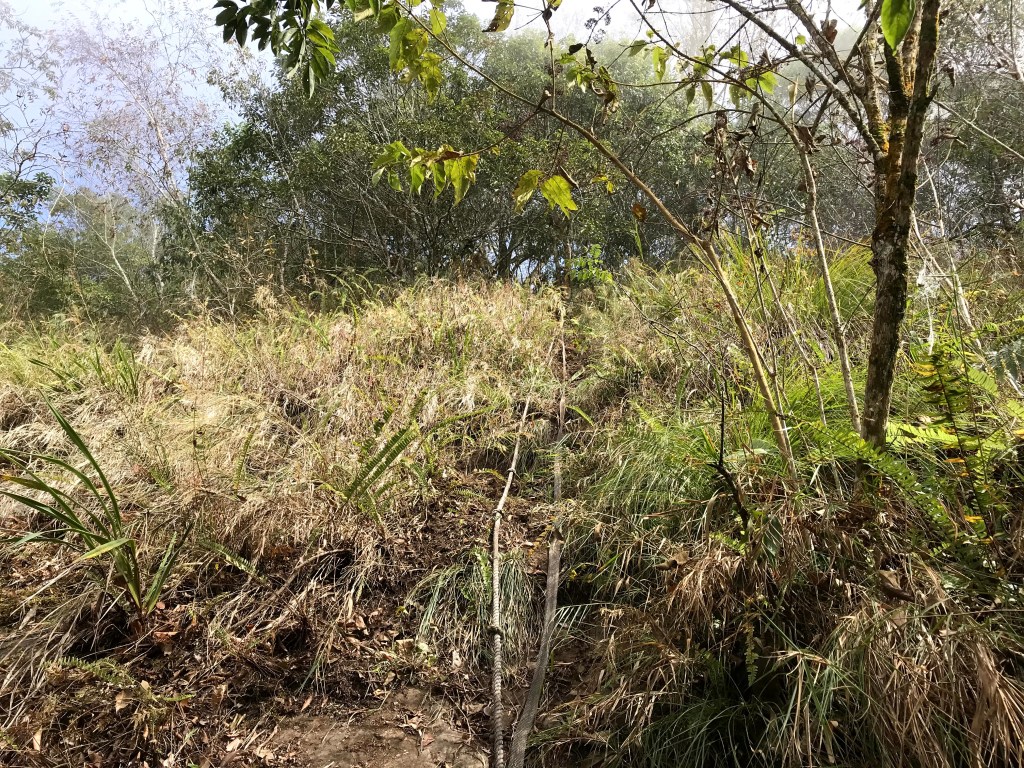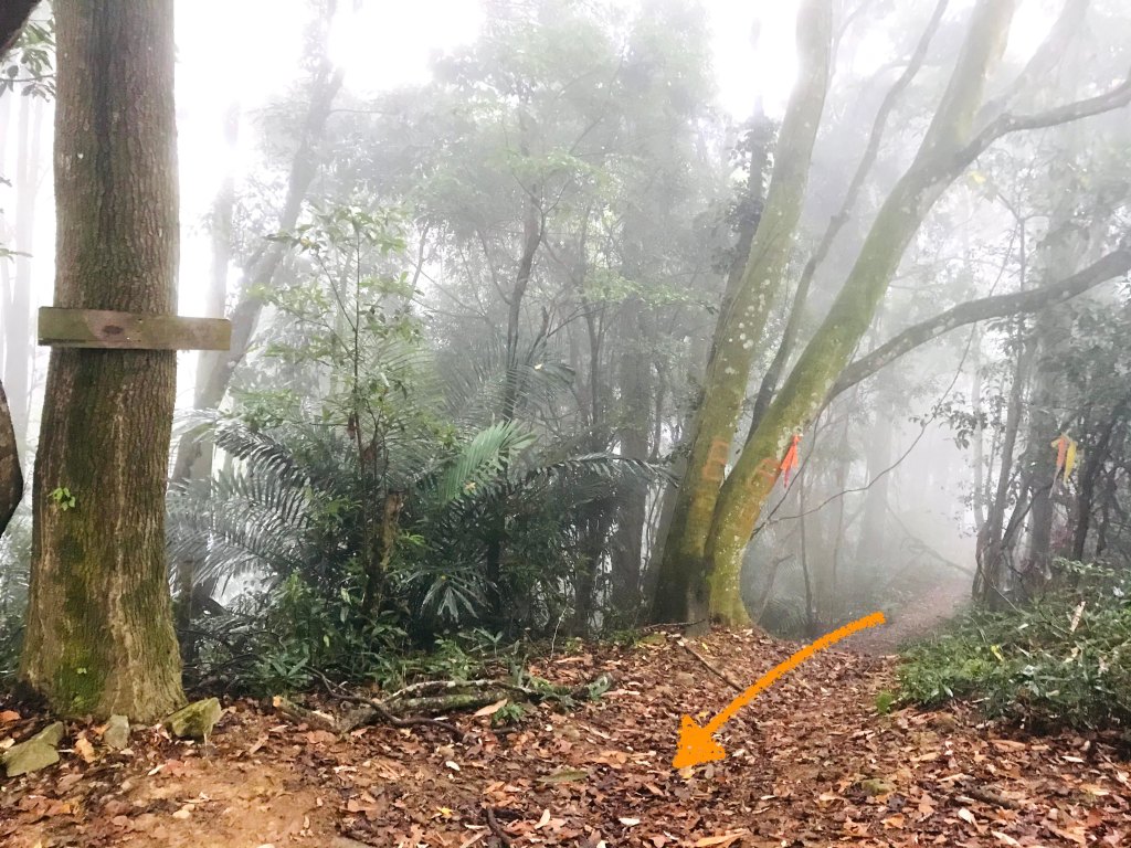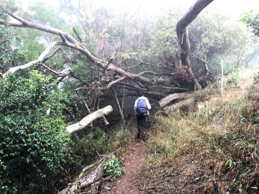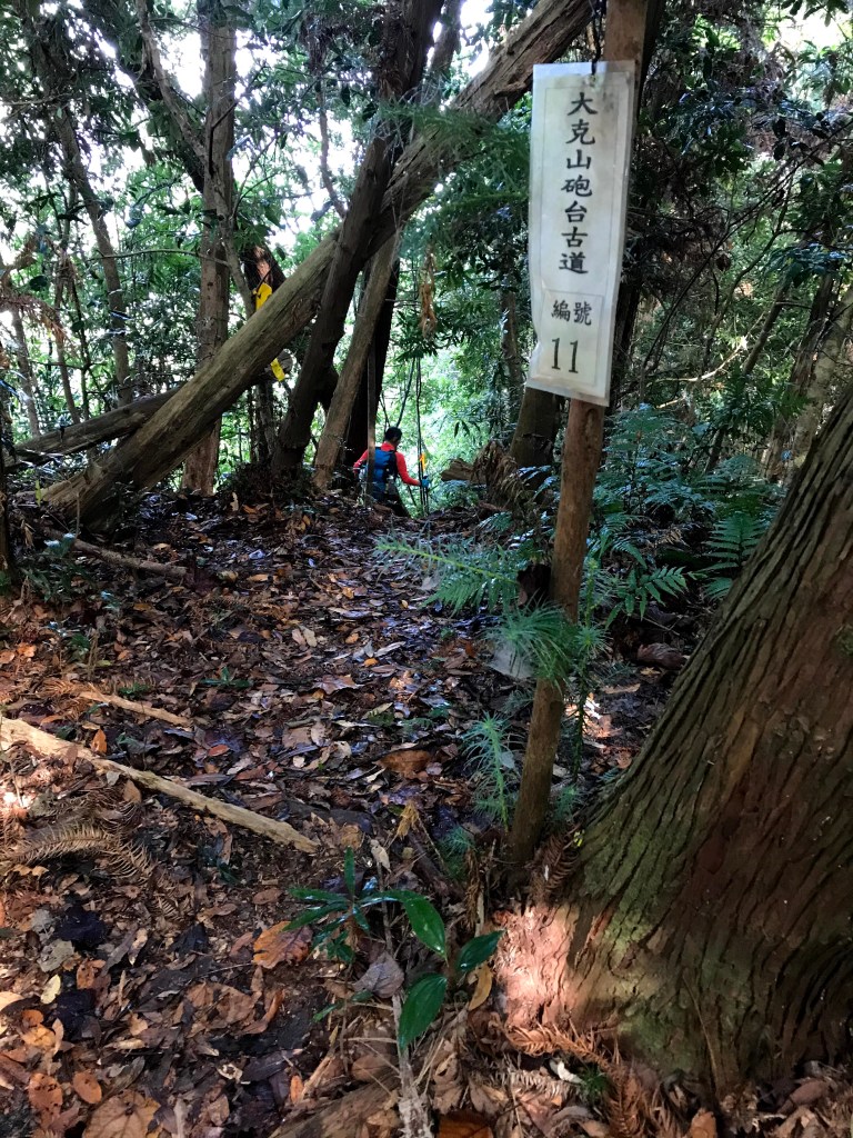當下大伙有了共識,如果到了大克山天氣還是沒有好轉,那麼今天的行程就是到大克山而已。從白布帆產業道路停好車後,再由產業道路旁的白布帆砲台古道進入,開始了今天的行程,此時有一隻大黃狗一直跟在我們身旁,也跟著我們亦步亦趨在我們前方引導我們前進。