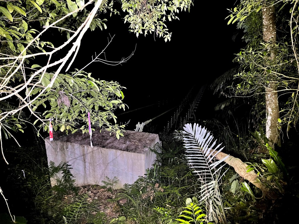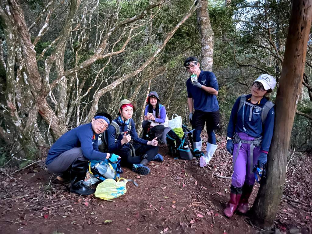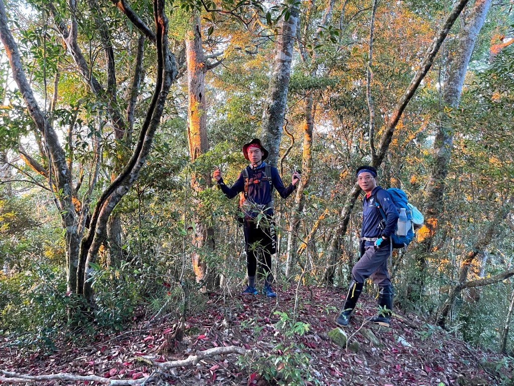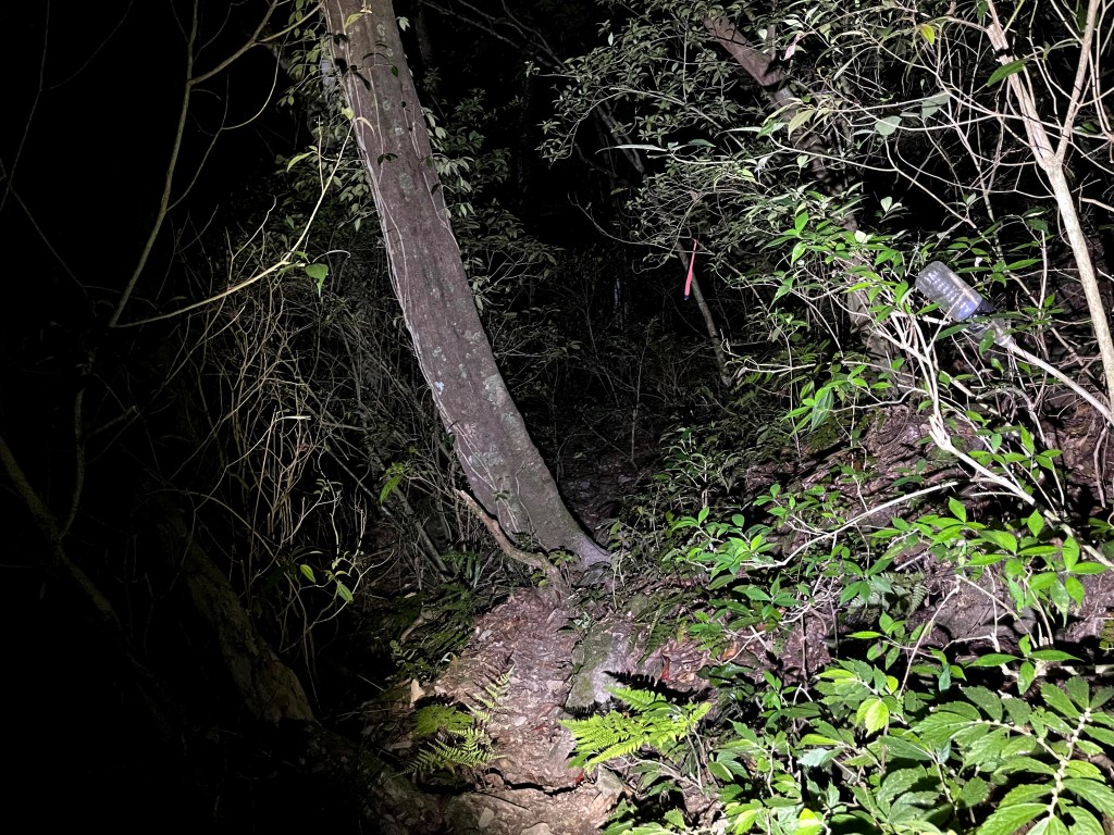 上圖:我們在第四個假山頭繼續往前30m的平台上休息,菲菲與阿志希望補充熱量,因此我們在此休息20分鐘吃點食物,順便將頭燈拿出來。
