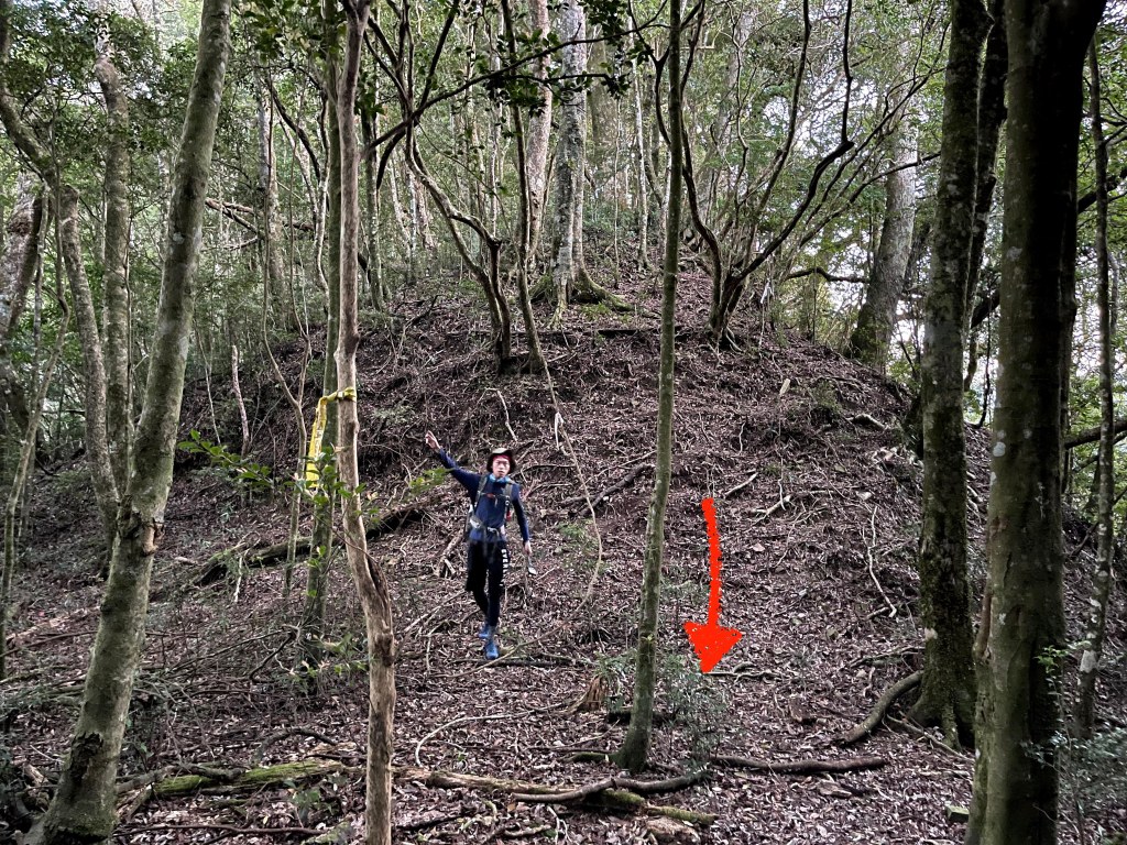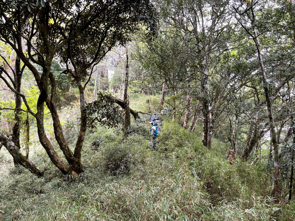 上圖:一小段就到第三與第四假山頭的鞍部,Steven與我(Gosen)已經比出四個手指,表示第四個假山頭快到了。