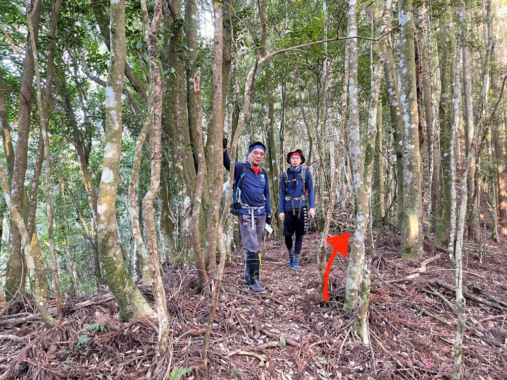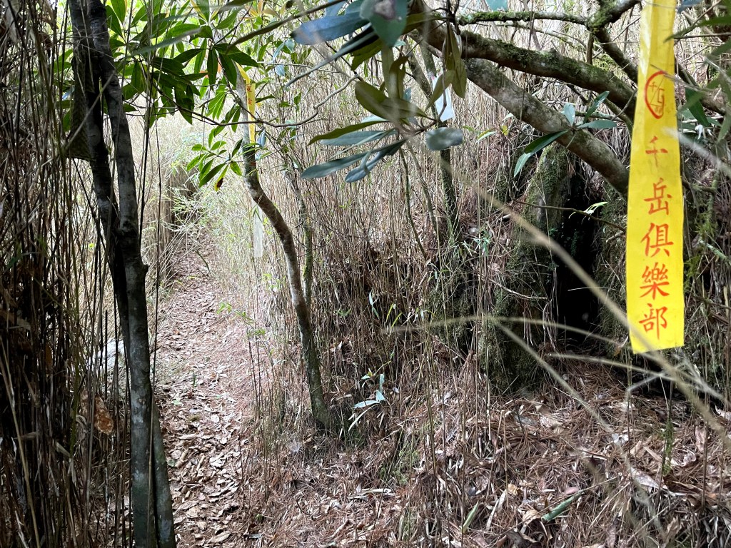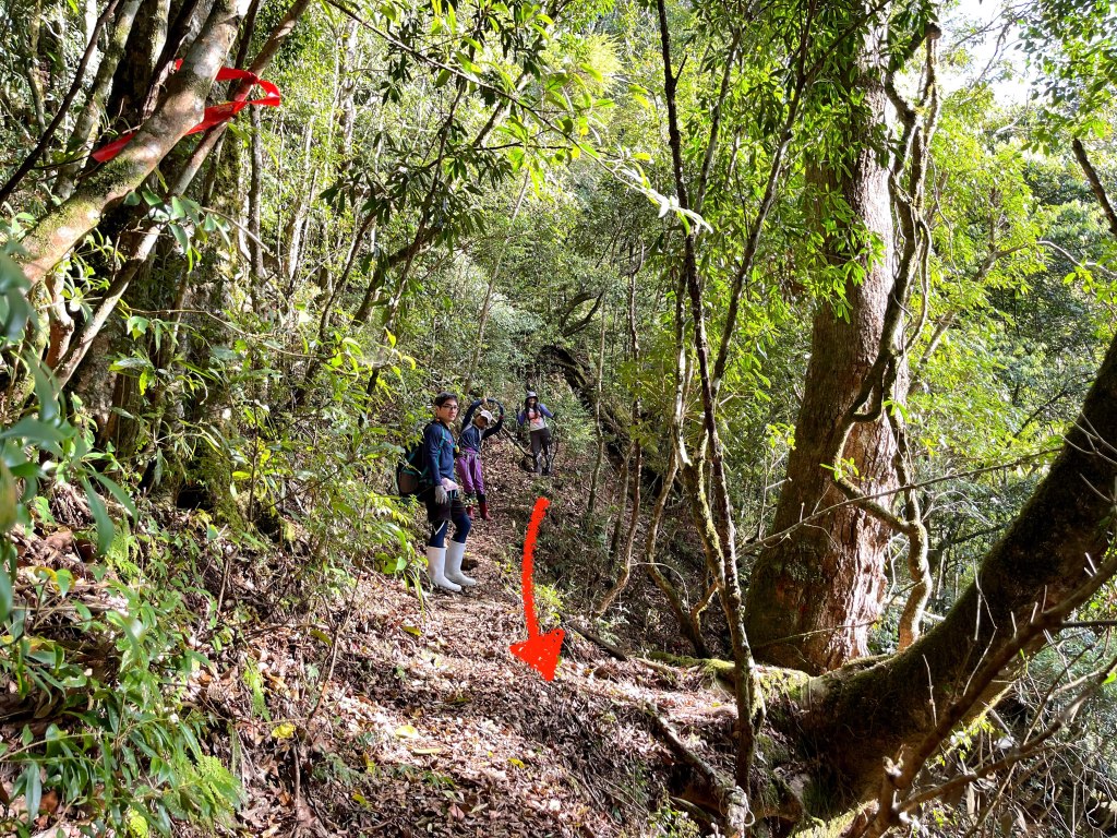 上圖:Steven所站的位置,其手指的右側有一條捷徑,可以通往高台山,離線地圖裡面有,去年Smile與我也曾經走過,也許以前有前輩走過,但去年走過時就已經覺得荒廢,布條極為稀少,不像是路徑了,也不建議讀者朋友們走。
