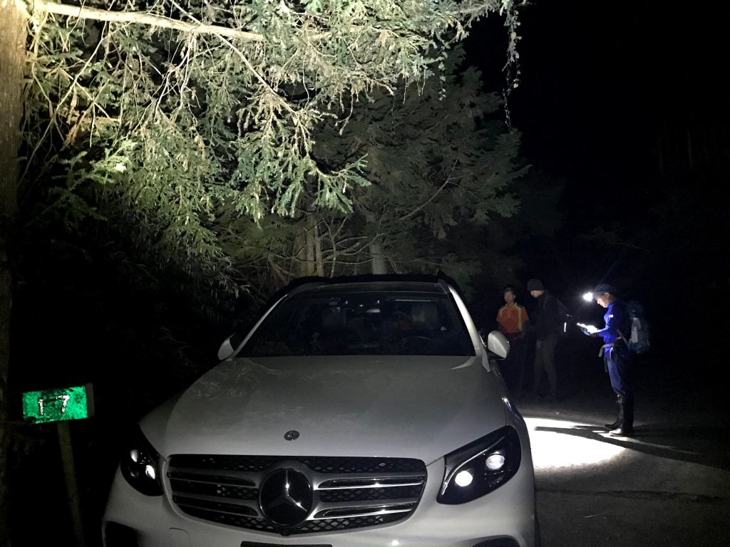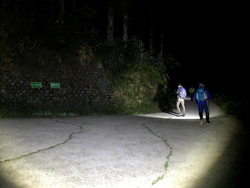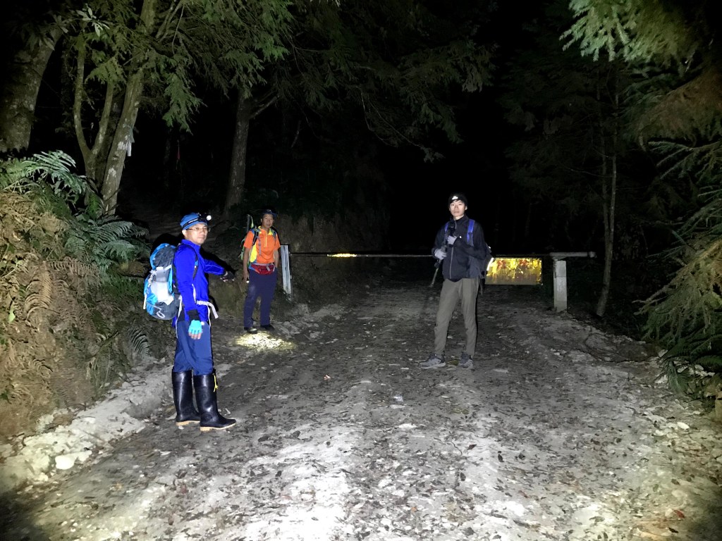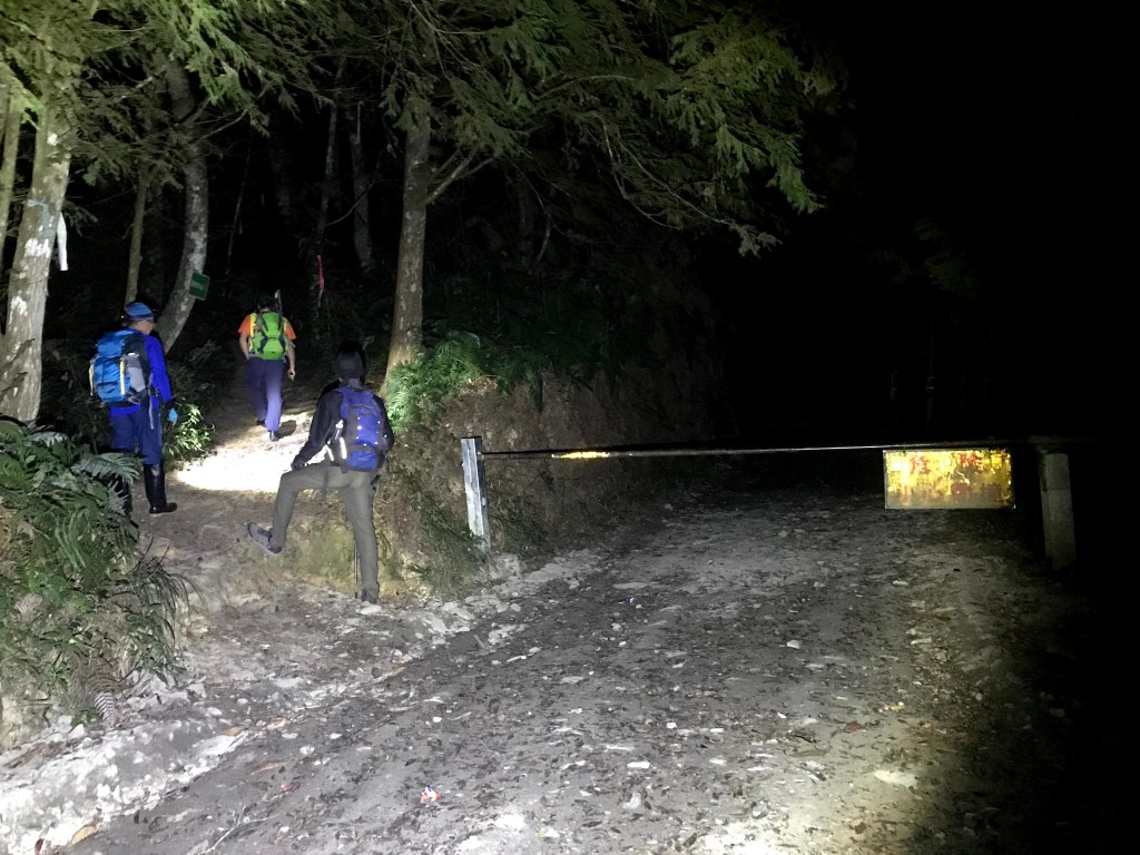 由於出發前,看到網路上很多的資料都說西巒大山單趟需要10K,來回往返需要20K,因此我們擔心如果等到早上8點,再將汽車開進登山口前停車,怕下山後沒有辦法在下午5點前回到登山口,並順利將汽車開出柵欄管制站。因此,我們設定在清晨4點準備起登,可以由柵欄右側門口進入。