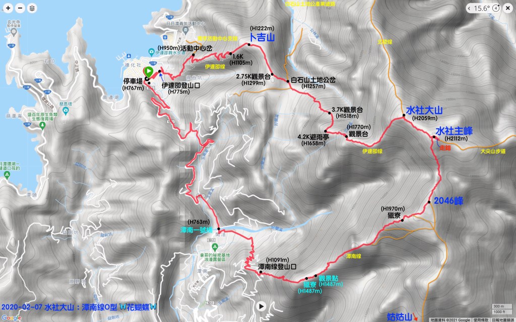 由海拔高度圖的大尖山步道經水社主峰而到水社大山。這一段路線,我們後來在2022.03.05時走過大水走過了這一段,可以參考下列的文章記錄: