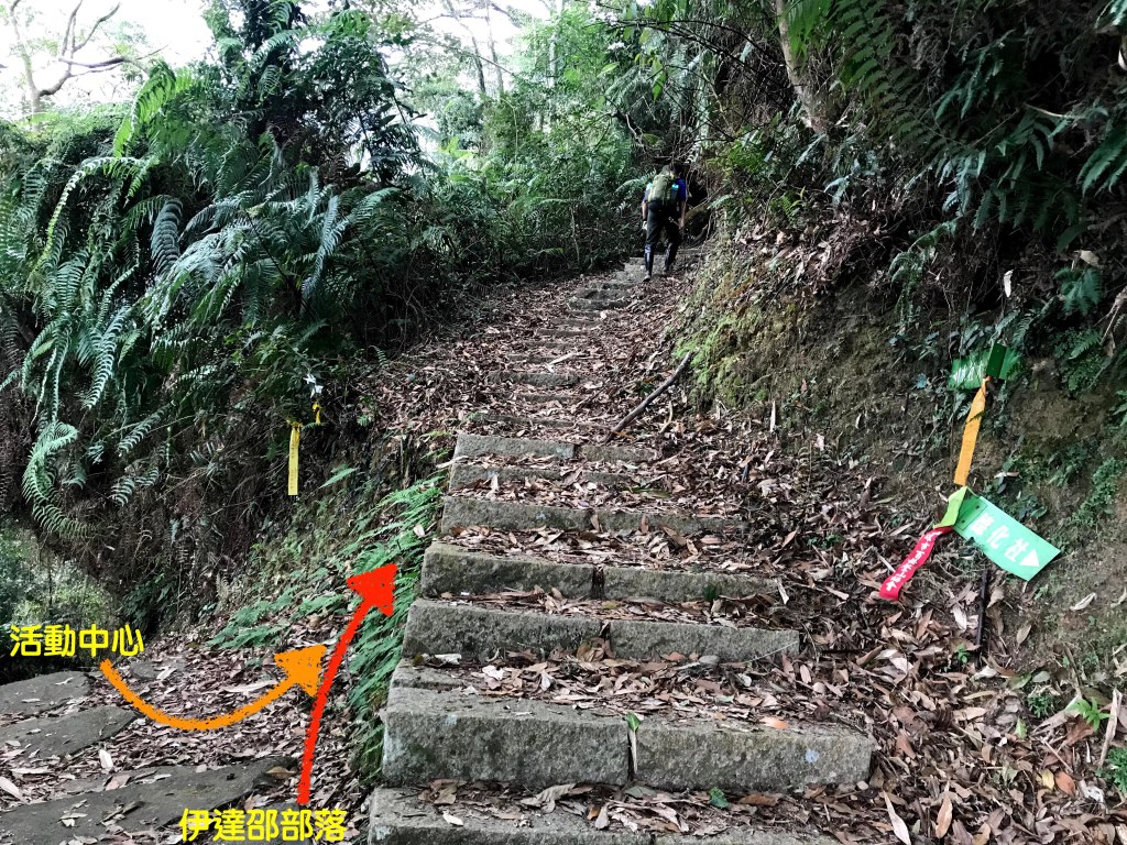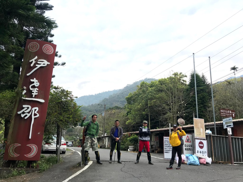 我們今天的路線是採由伊達邵線進入,而由潭南線出。由伊達邵起登,有兩個地點可選,一是由日月潭青年活動中心起登,另一是由伊達紹部落門牌起登,兩條路線都會在路徑中間連結。早上06:30我們由台中市區開車出發,早上8點將車停在伊達邵中正路停車場裡,換裝後在8點15分開始起登,過了伊達邵部落門牌後左轉進入伊達邵部落,再直行約200m,右轉即為登山口。
