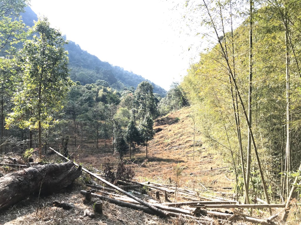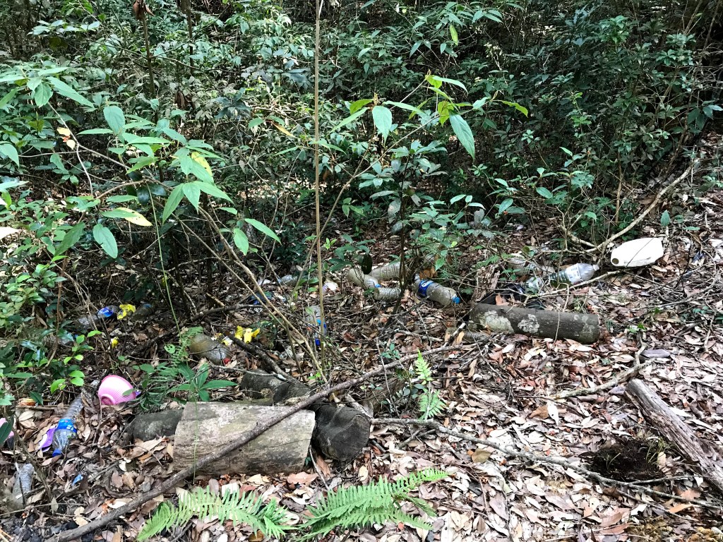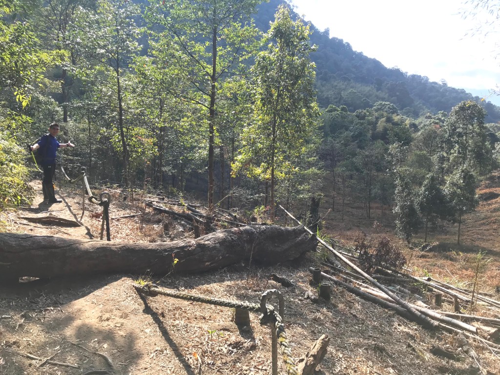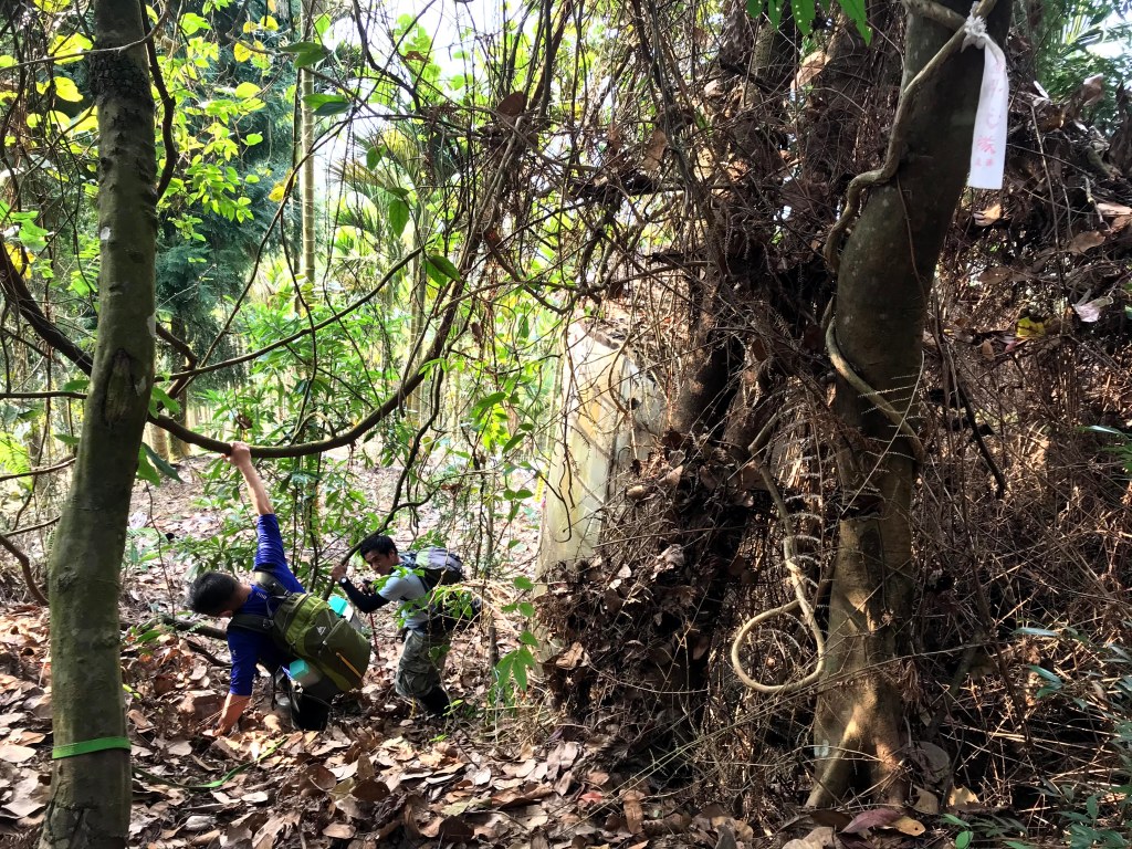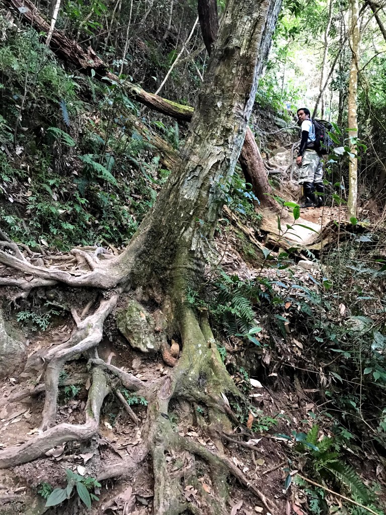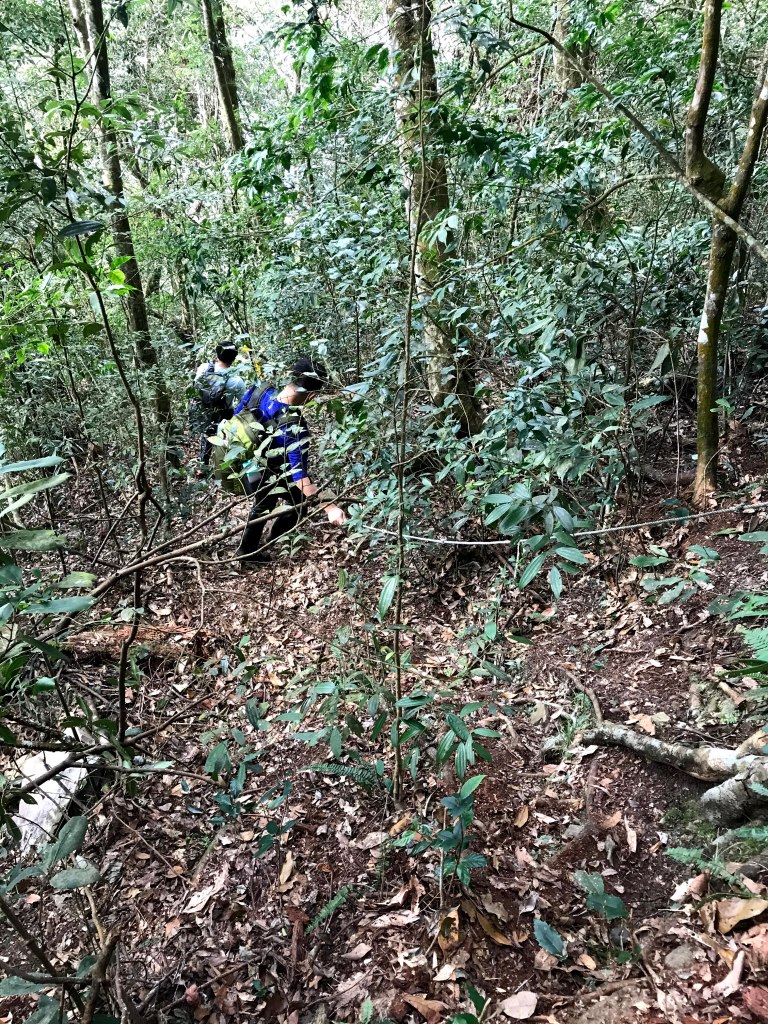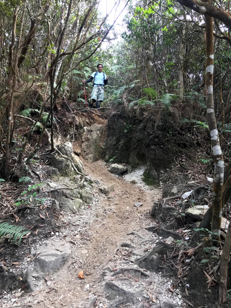 整個路線難易程度給中高,是因為過了2046峰之後,一直到潭南登山口,這一段路中有一段約300m的過程,要一路延著陡坡之字形陡下,兩旁樹木都腐朽到不太能支撐,且路線崎嶇落葉很多土質鬆軟,一路都在滑行中,要注意別滑落到邊坡,也還要注意兩旁像玫瑰的莖刺勾人。這300m有難度,也看得出潭南段很少山友走,因為布條都已經呈現脆化或斷裂現象。