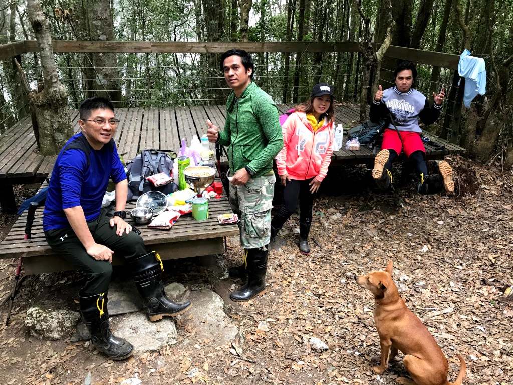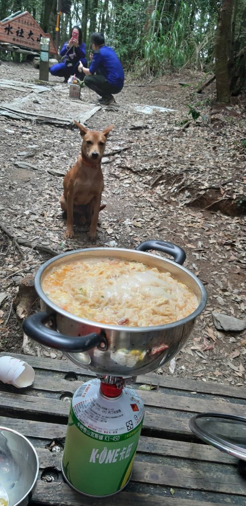 我們的菲律賓伙伴Kim、Mario還有Elmer,他們習慣要吃到白米飯否則就沒有力氣,所以只好在水社大山煮午餐,我們煮了一大鍋麵,Kim、Mario及Elmer三人則另外亦吃自帶的白米飯還有罐頭,我們也準備了蘋果及橘子,在此休息了將近1小時20分鐘,才收拾好行囊再出發。