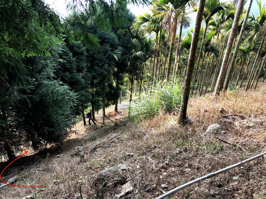 出了登山口就會發現身處於私人果園的山腰上,接下來的1.8K路徑都是平坦緩下且穿過果園的產業道路,且產業道路的後段就會轉為柏油路,走這1.8K產業道路後接著右轉可接上潭南一號橋,即接上投97公路開法段,從開法沿著投97公路再走上約4.9K即可回到伊達邵中正路停車場。其中走在最後這段4.9K的公路上,其路徑呈現陡上而後緩下的過程。這裡所談的投97公路是此路段交通號誌所標明的公路名稱,但在Google地圖裡卻標示為投63公路。