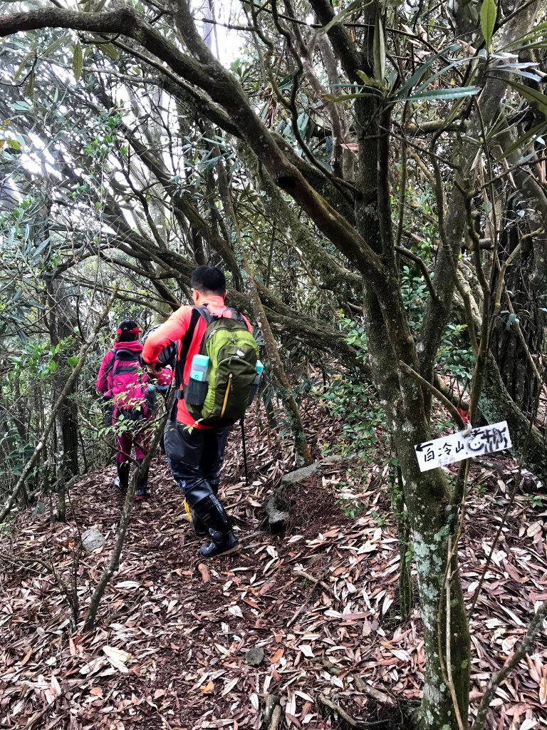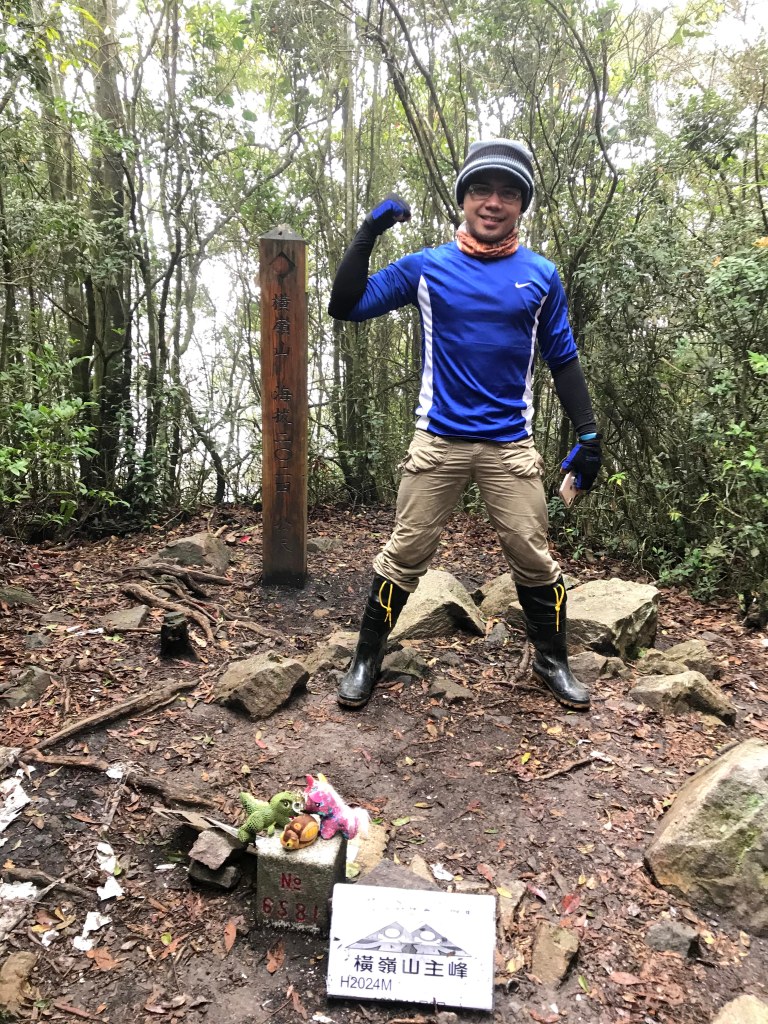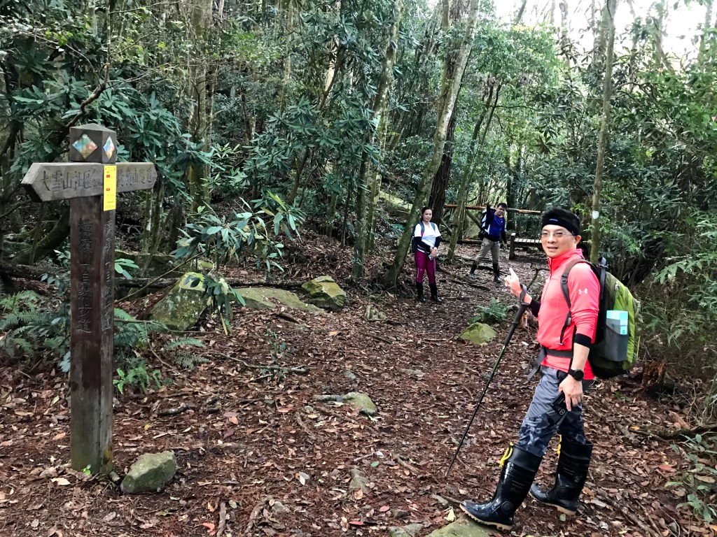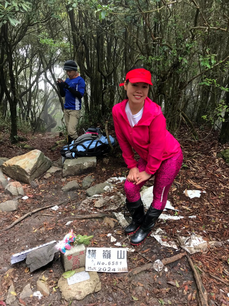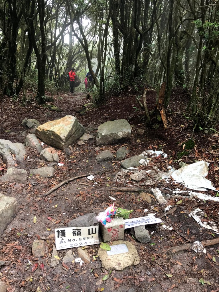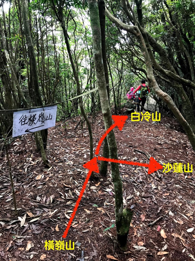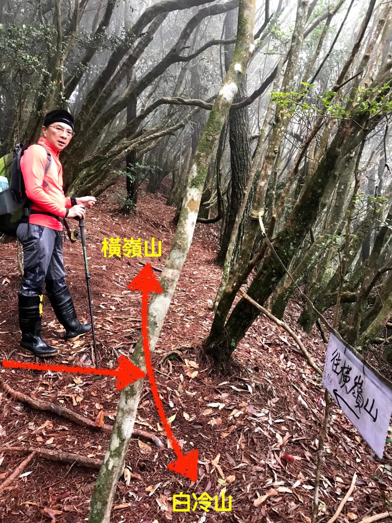 休息後,繼續走一小段,會到達三岔路口(H2010m),往左走100m即到達橫嶺山(H2024m),在此休息,遇到一些山友,閒聊了蠻久,有些山友知道我們要繼續往白冷山,也詢問我們路況是否好走?其實,我們都沒有走過,而這一週,前幾天都在下大雨,且冷鋒也還沒結束,我猜,應該路況會有點濕滑吧!而且在橫嶺山休息時,也覺得溫度不到10度C,有點寒冷!