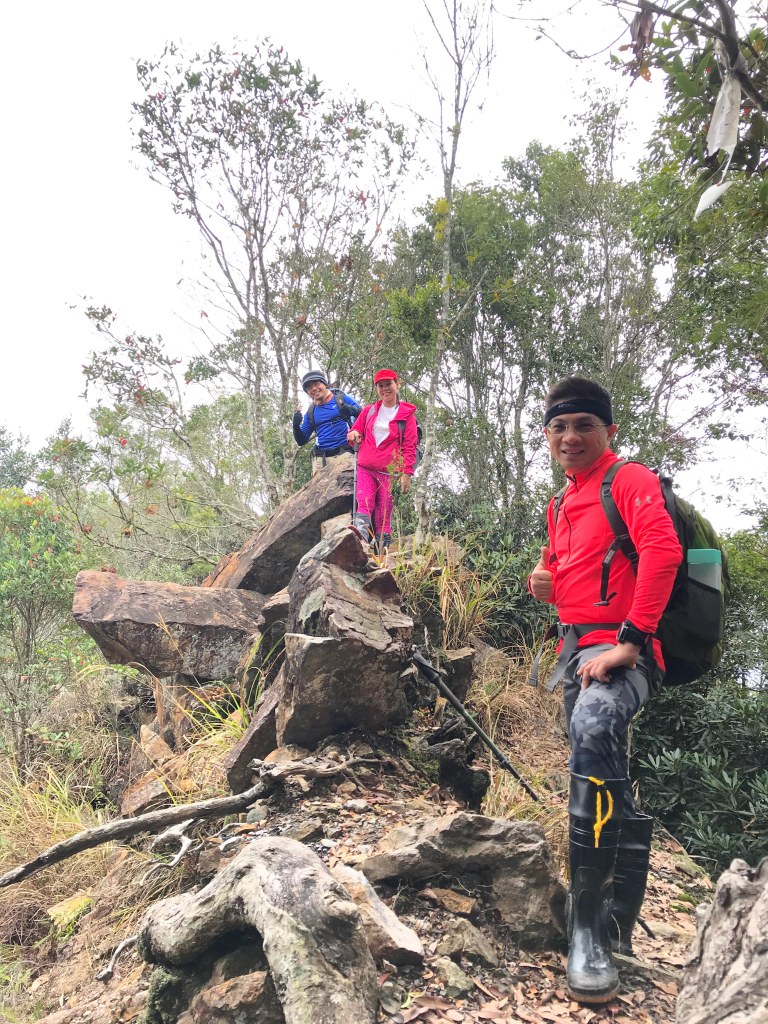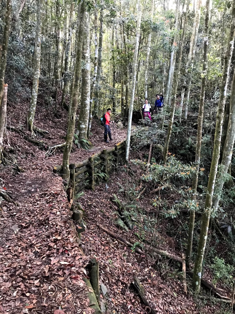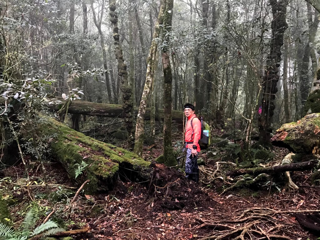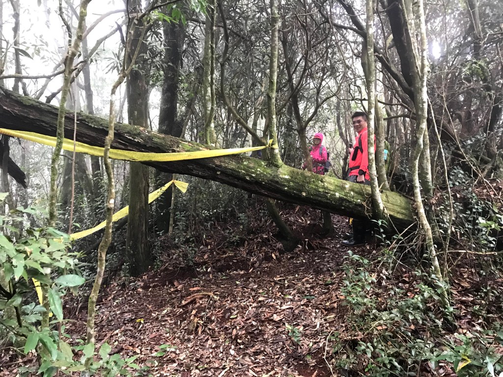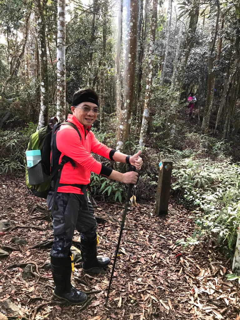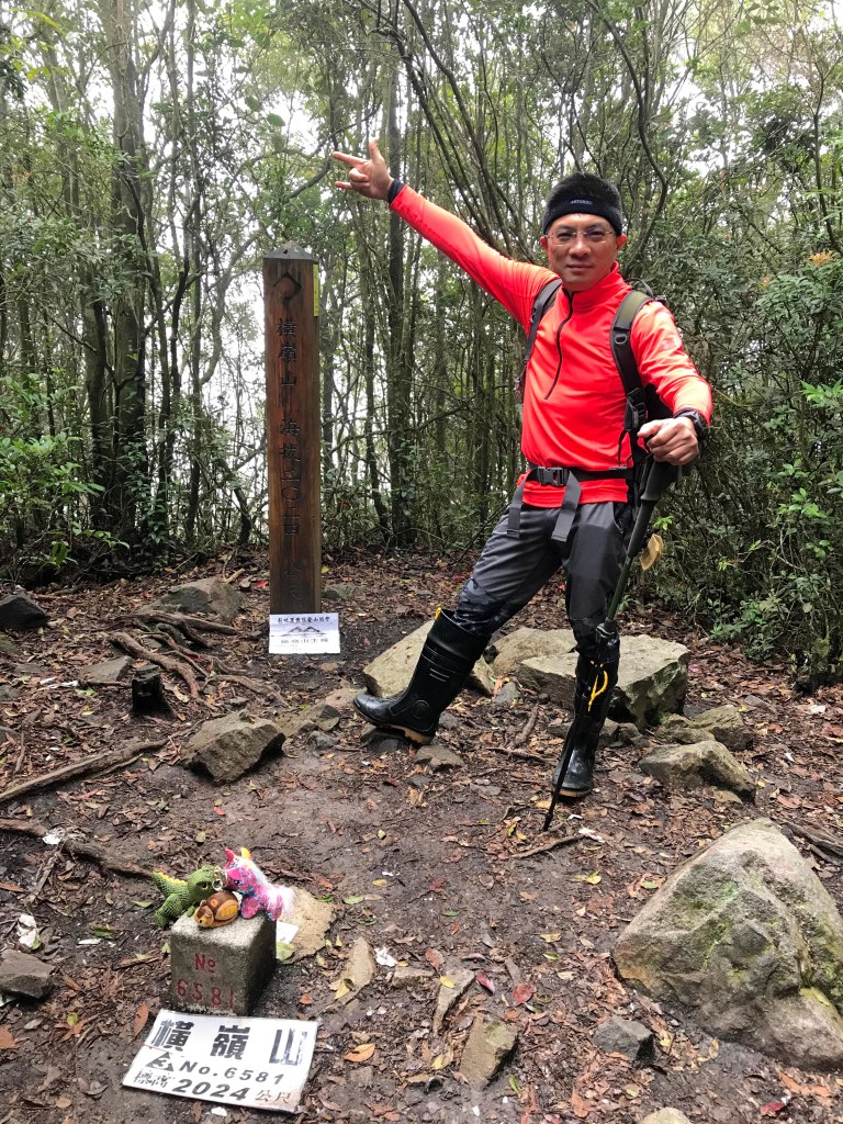 休息後,繼續走一小段,會到達三岔路口(H2010m),往左走100m即到達橫嶺山(H2024m),在此休息,遇到一些山友,閒聊了蠻久,有些山友知道我們要繼續往白冷山,也詢問我們路況是否好走?其實,我們都沒有走過,而這一週,前幾天都在下大雨,且冷鋒也還沒結束,我猜,應該路況會有點濕滑吧!而且在橫嶺山休息時,也覺得溫度不到10度C,有點寒冷!