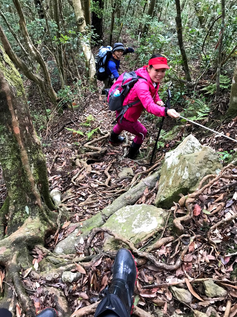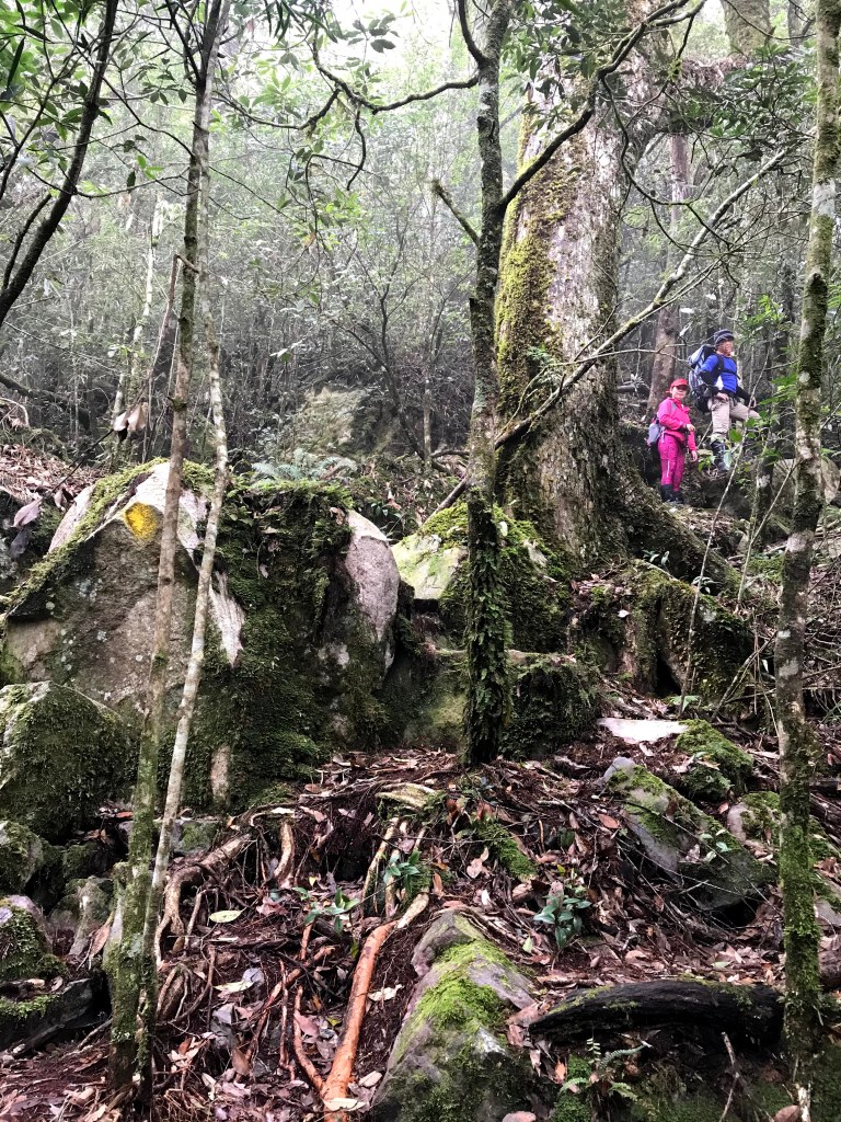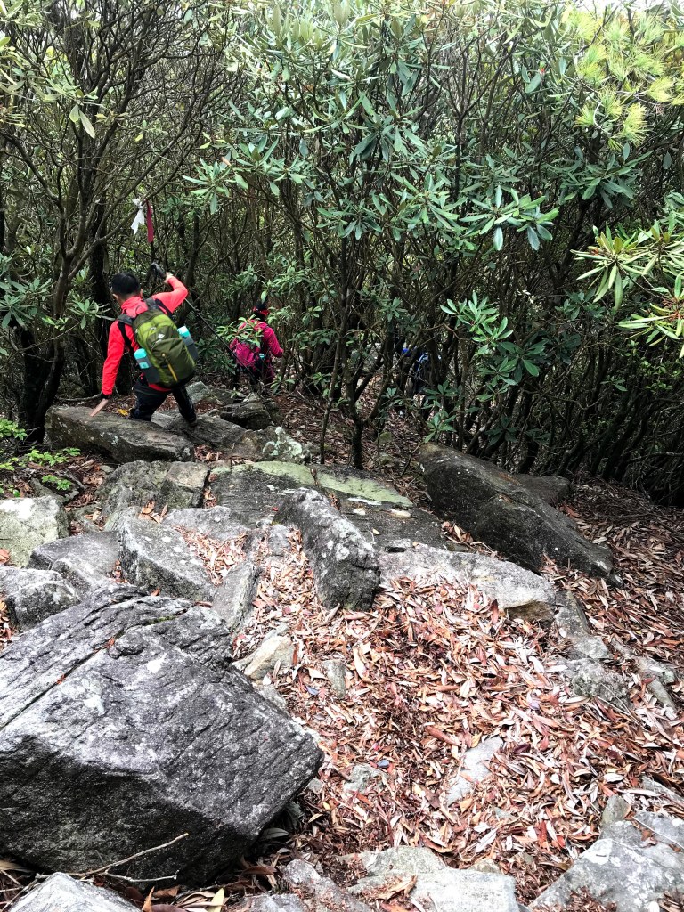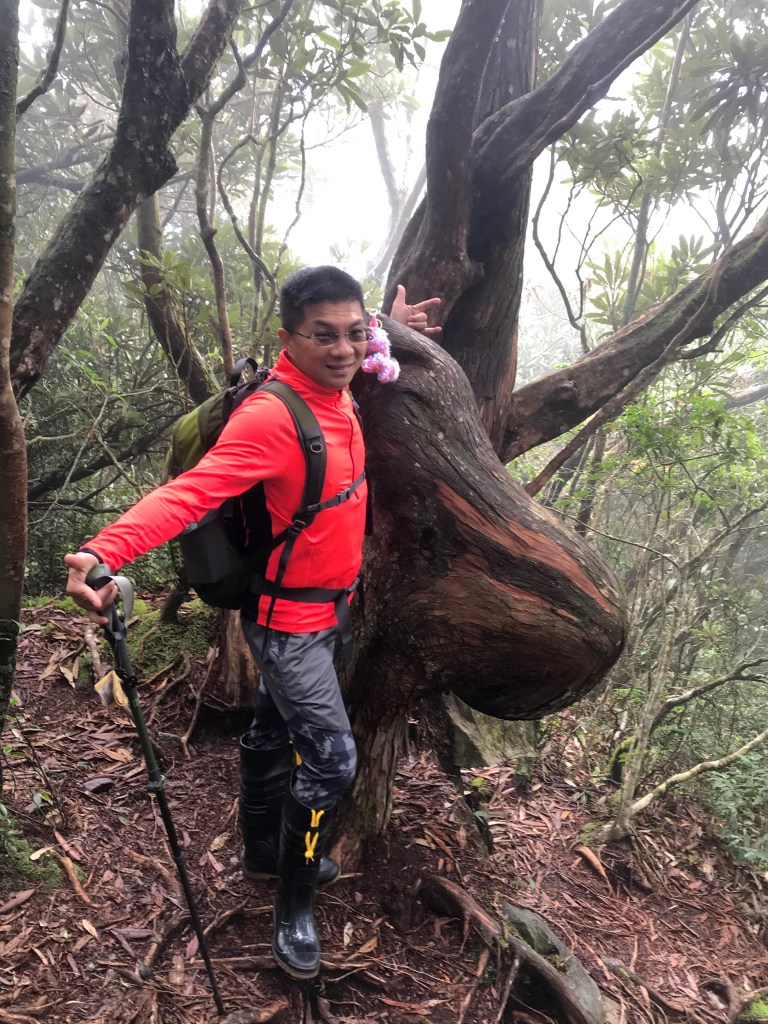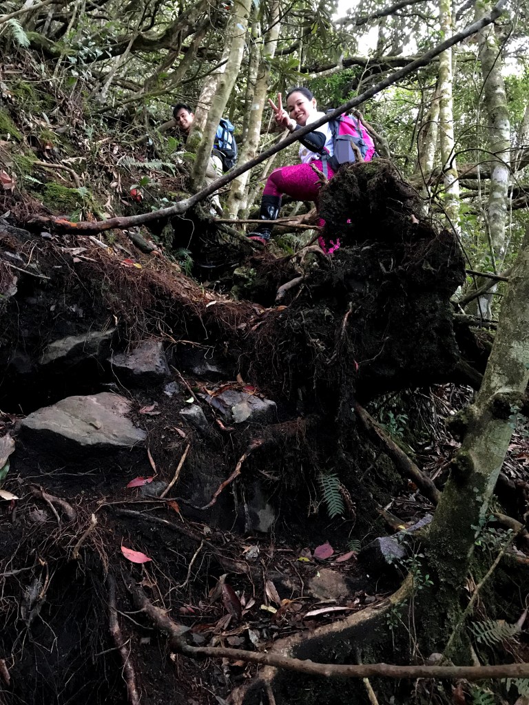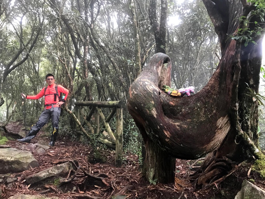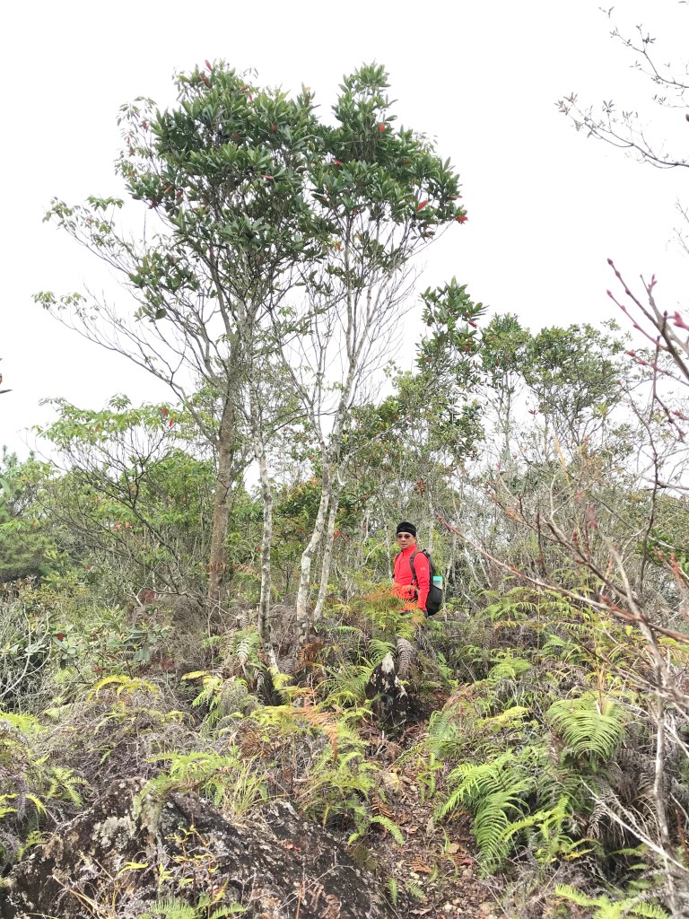 休息後,繼續走一小段,會到達三岔路口(H2010m),往左走100m即到達橫嶺山(H2024m),在此休息,遇到一些山友,閒聊了蠻久,有些山友知道我們要繼續往白冷山,也詢問我們路況是否好走?其實,我們都沒有走過,而這一週,前幾天都在下大雨,且冷鋒也還沒結束,我猜,應該路況會有點濕滑吧!而且在橫嶺山休息時,也覺得溫度不到10度C,有點寒冷!