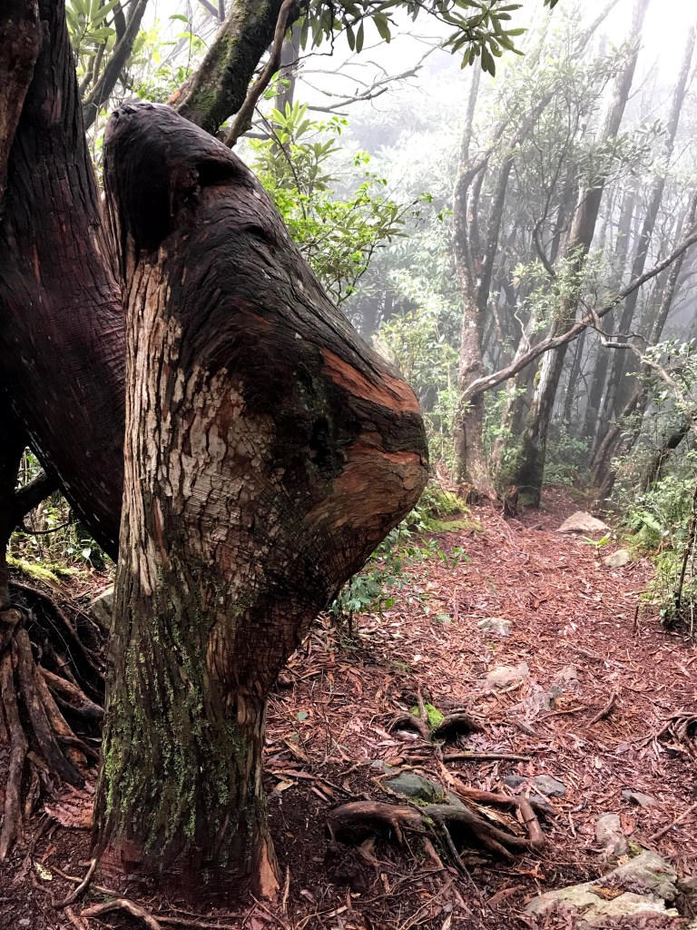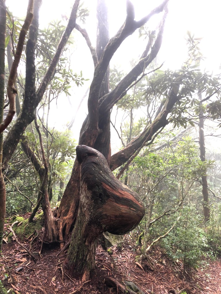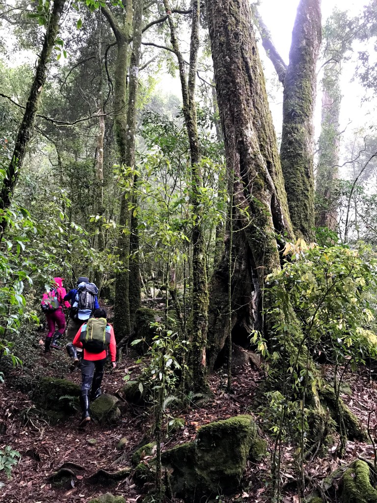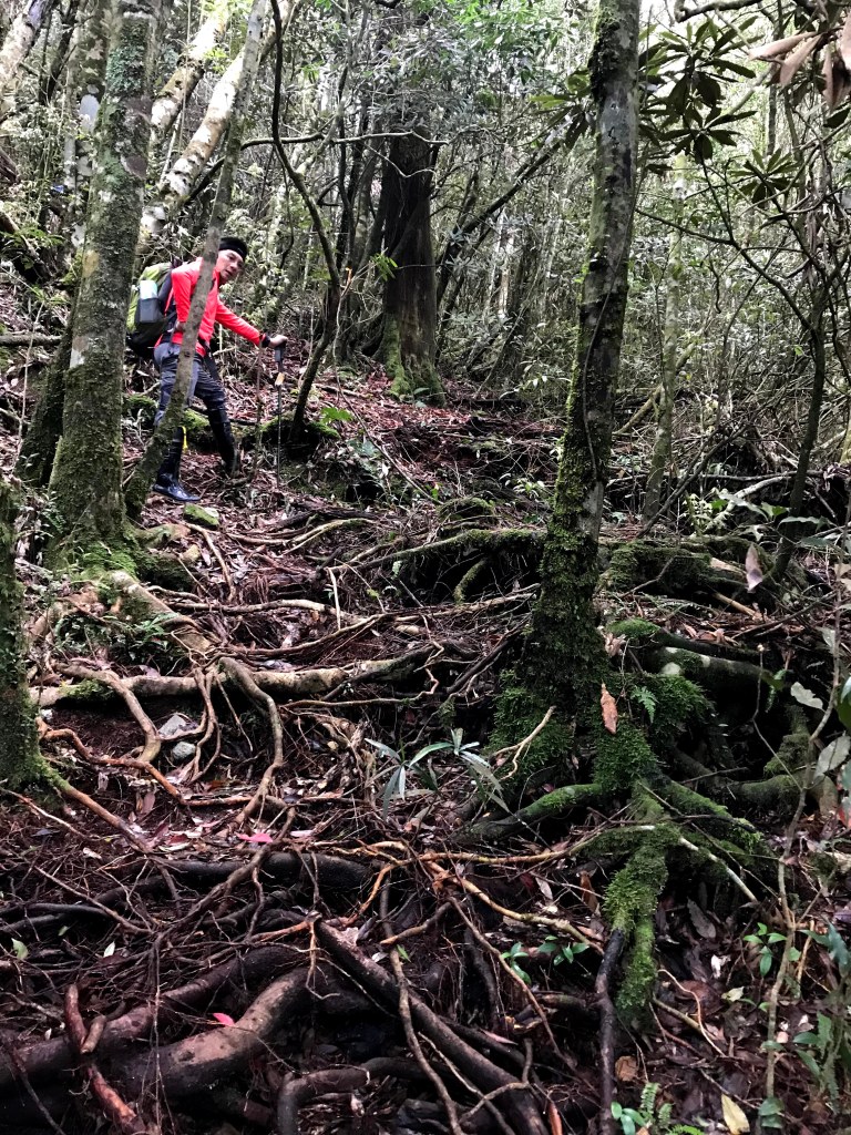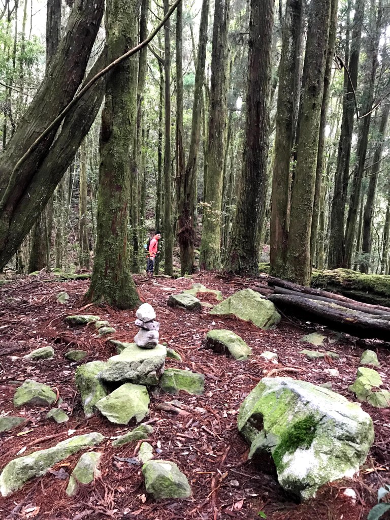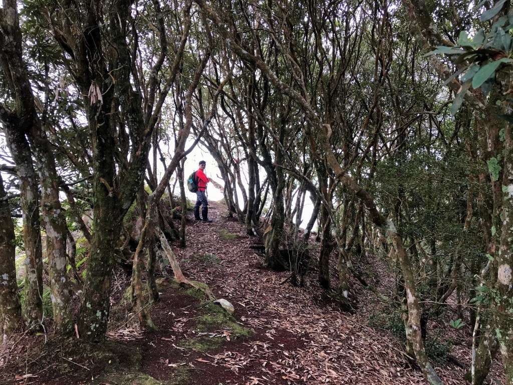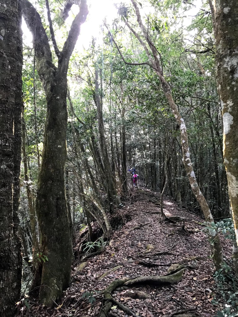 休息後,繼續走一小段,會到達三岔路口(H2010m),往左走100m即到達橫嶺山(H2024m),在此休息,遇到一些山友,閒聊了蠻久,有些山友知道我們要繼續往白冷山,也詢問我們路況是否好走?其實,我們都沒有走過,而這一週,前幾天都在下大雨,且冷鋒也還沒結束,我猜,應該路況會有點濕滑吧!而且在橫嶺山休息時,也覺得溫度不到10度C,有點寒冷!