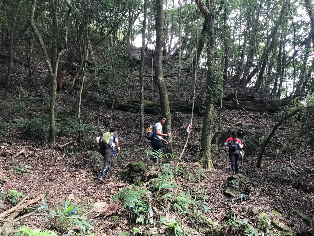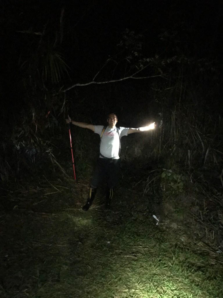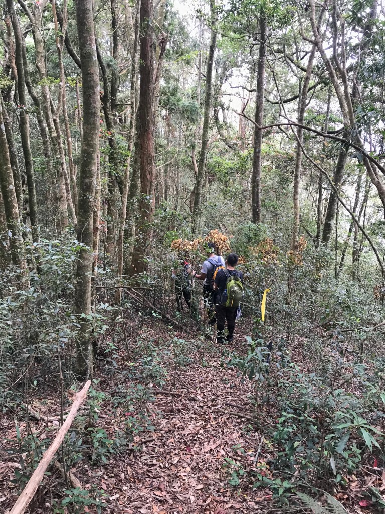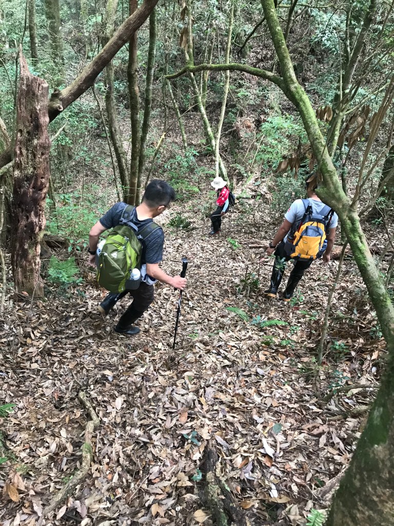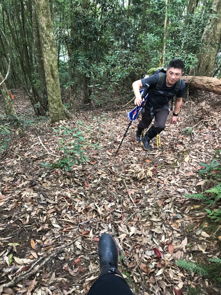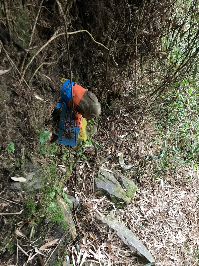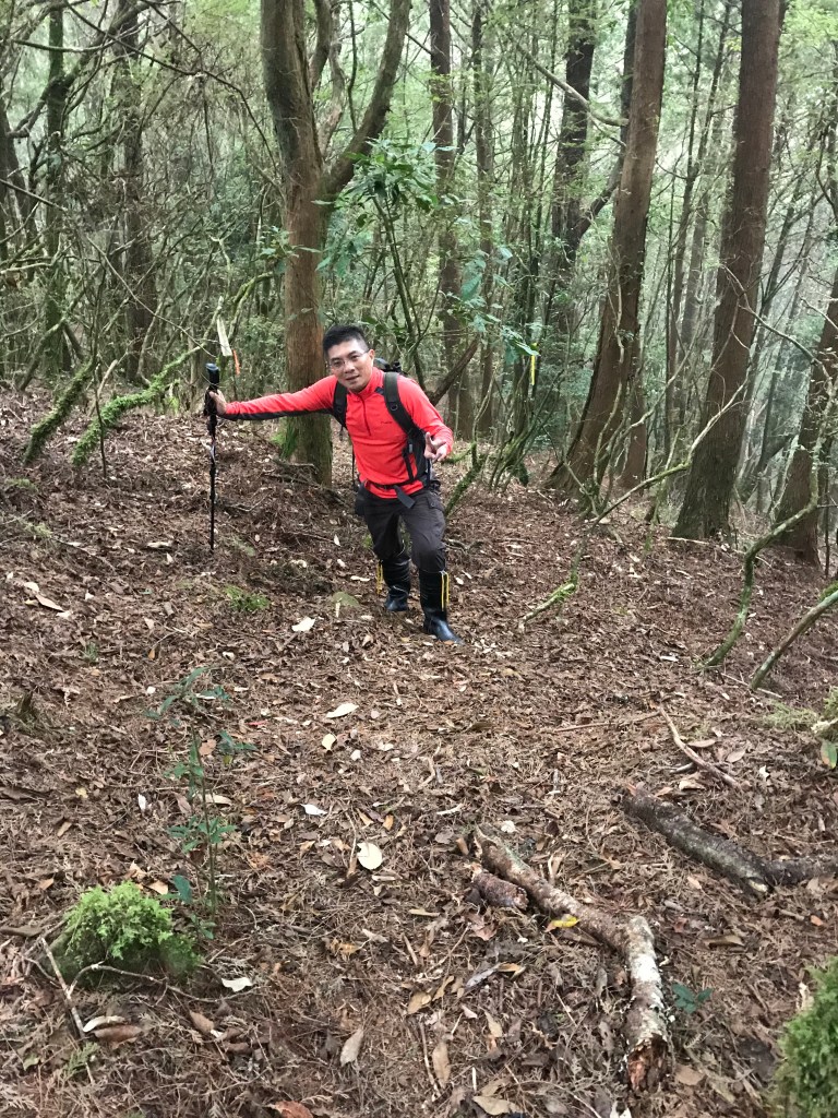 一開始在這一段路徑上有莫名其妙回走現象時,我個人內心有震驚了一下,事前我並沒有告訴其他三人,在這一段路徑上發生過的奇怪事件。但冷靜回想,此時大伙不想摸黑太久,走得又比較快,因此個人相信在過髮夾彎時,Smile一定沒有注意到方向,僅看到登山布條就跟著走,而不小心又往回守關山的方向。在此段耽誤了40分鐘。
